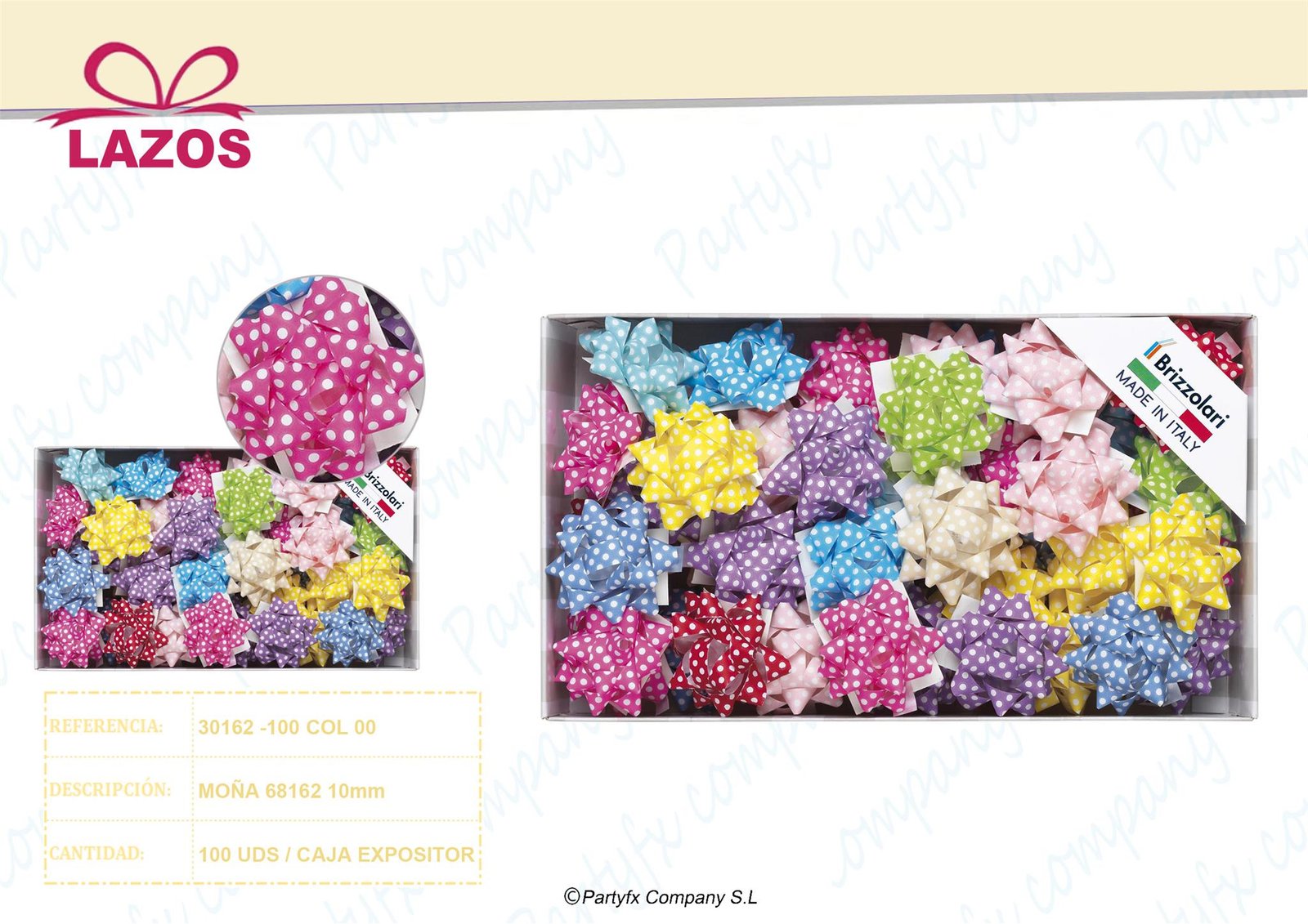 Lazos decorativos surtidos para regalo, disponibles en diferentes colores, tamaños y diseños.