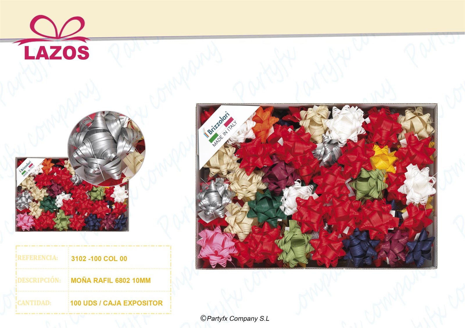 Lazos decorativos surtidos para regalo, disponibles en diferentes colores, tamaños y diseños.