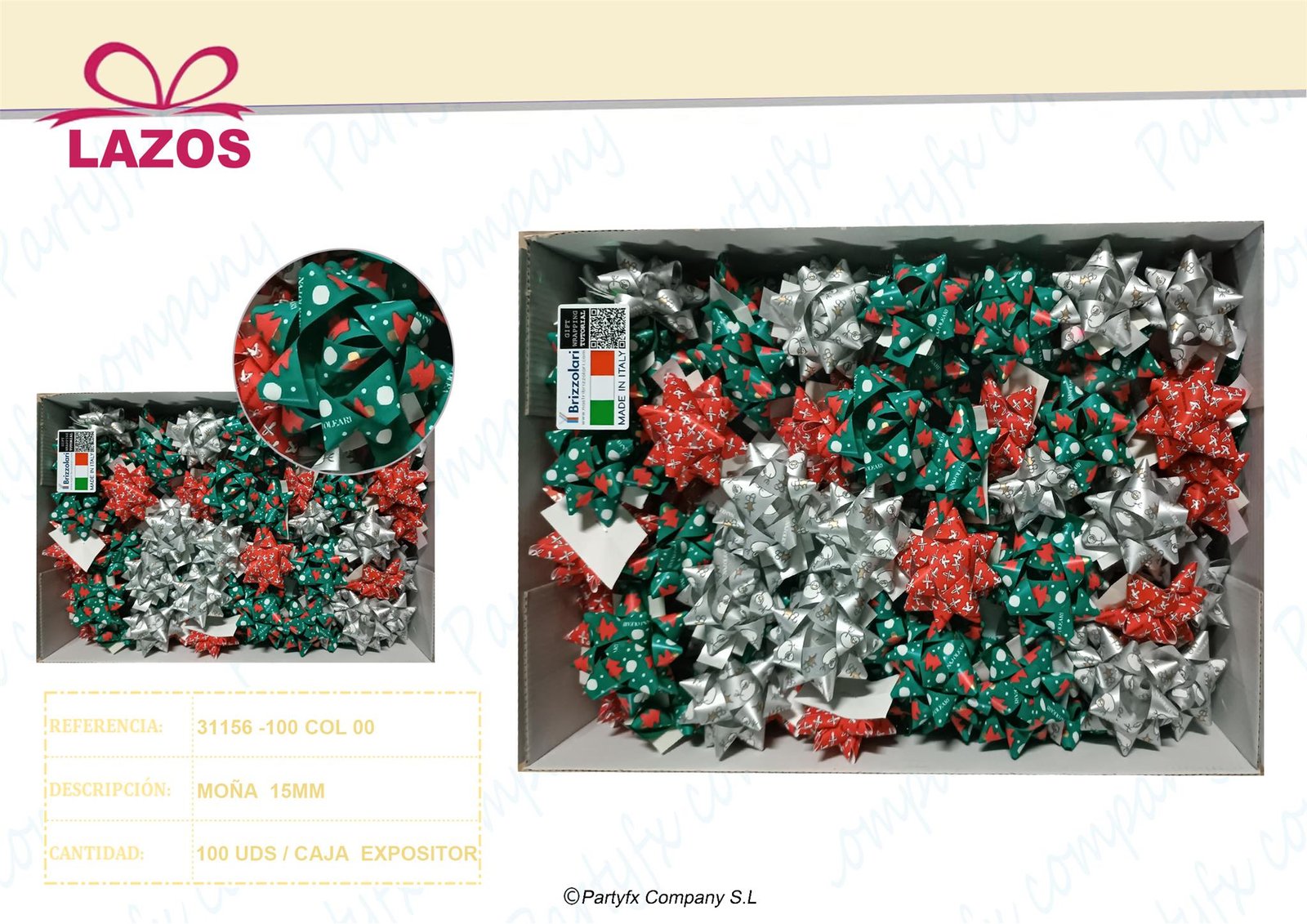 Lazos decorativos surtidos para regalo, disponibles en diferentes colores, tamaños y diseños.