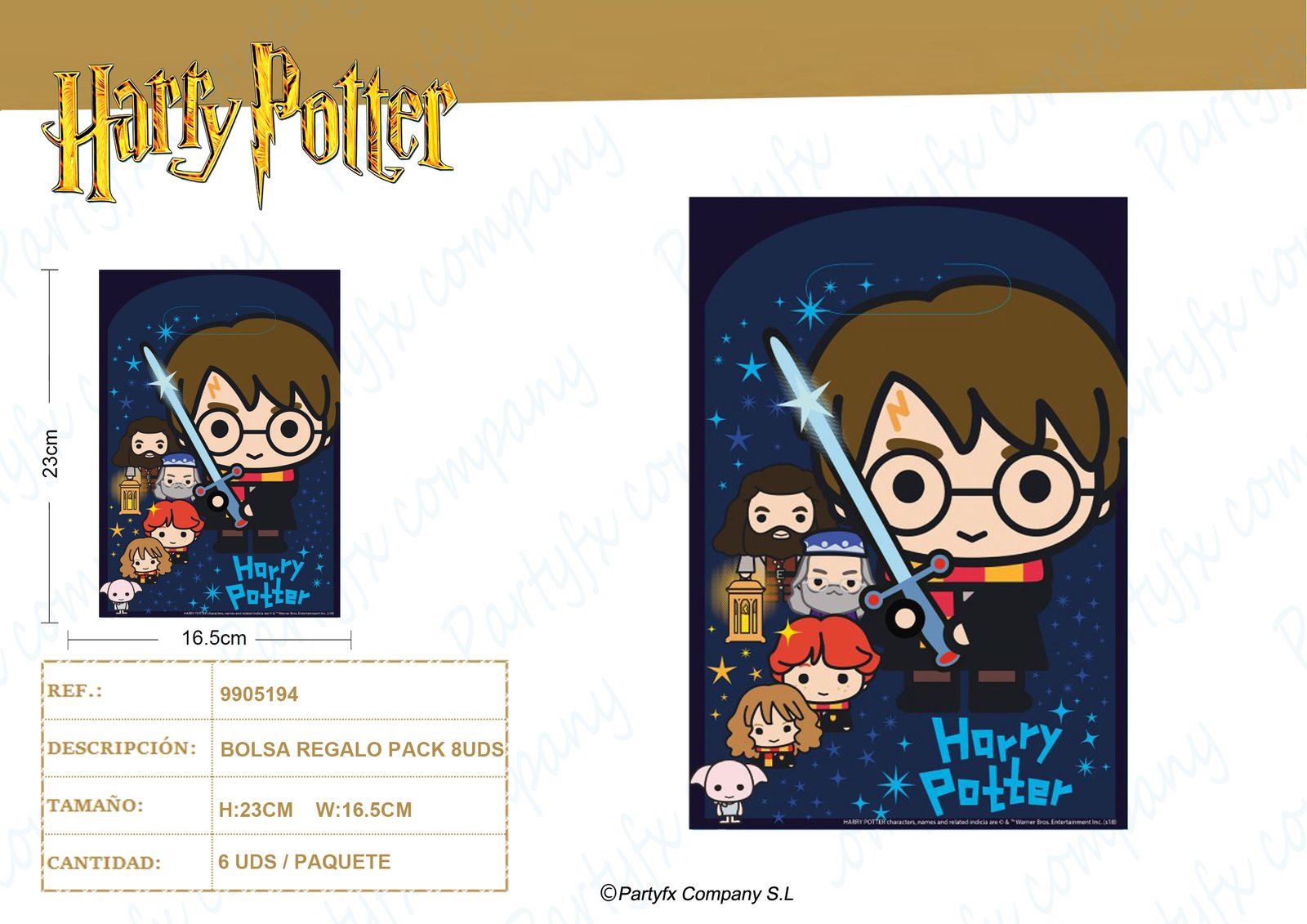 8 Bolsa regalo Harry Potter Plastic 23.4 x 16.2 cm