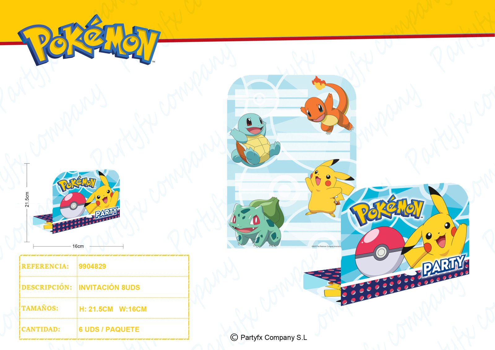 8 Invitacion y Sbore Pokemon papel 16 x 21.5 cm