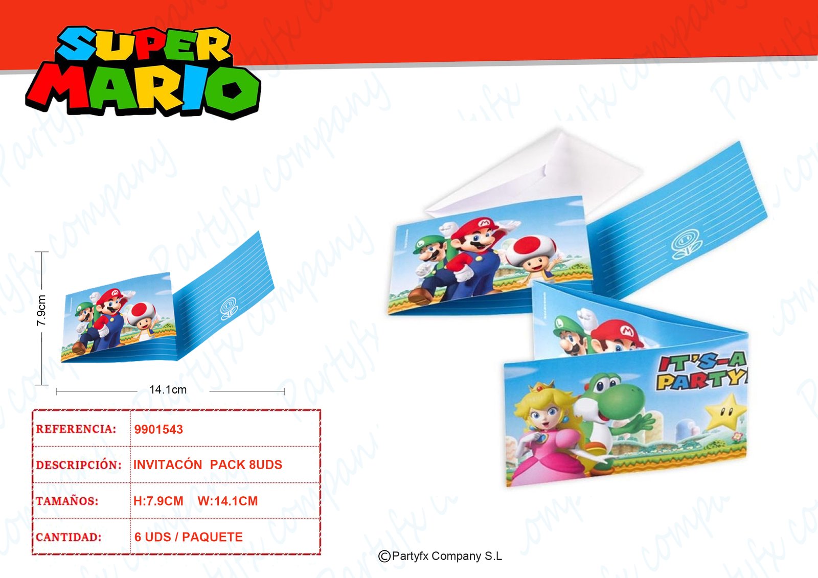 8 Invitacion y Sbore Super Mario papel 7.9 x 14.1 cm