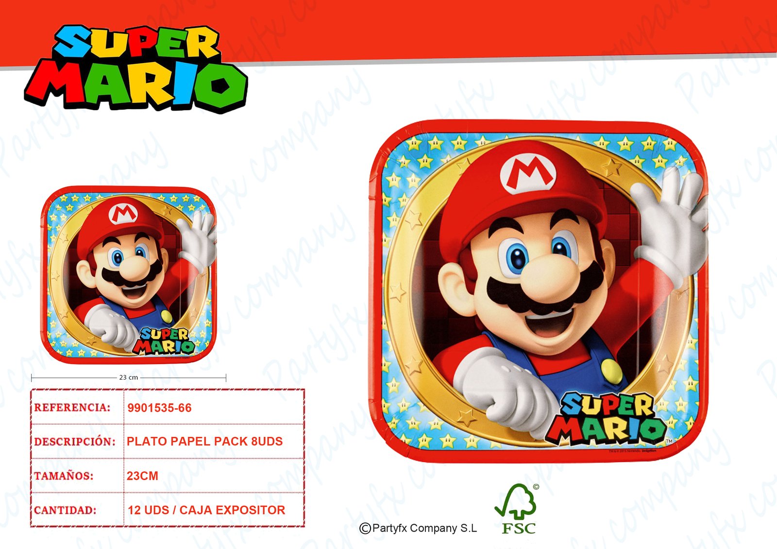 8 Platos Super Mario Cuadrado papel 23 x 23 cm