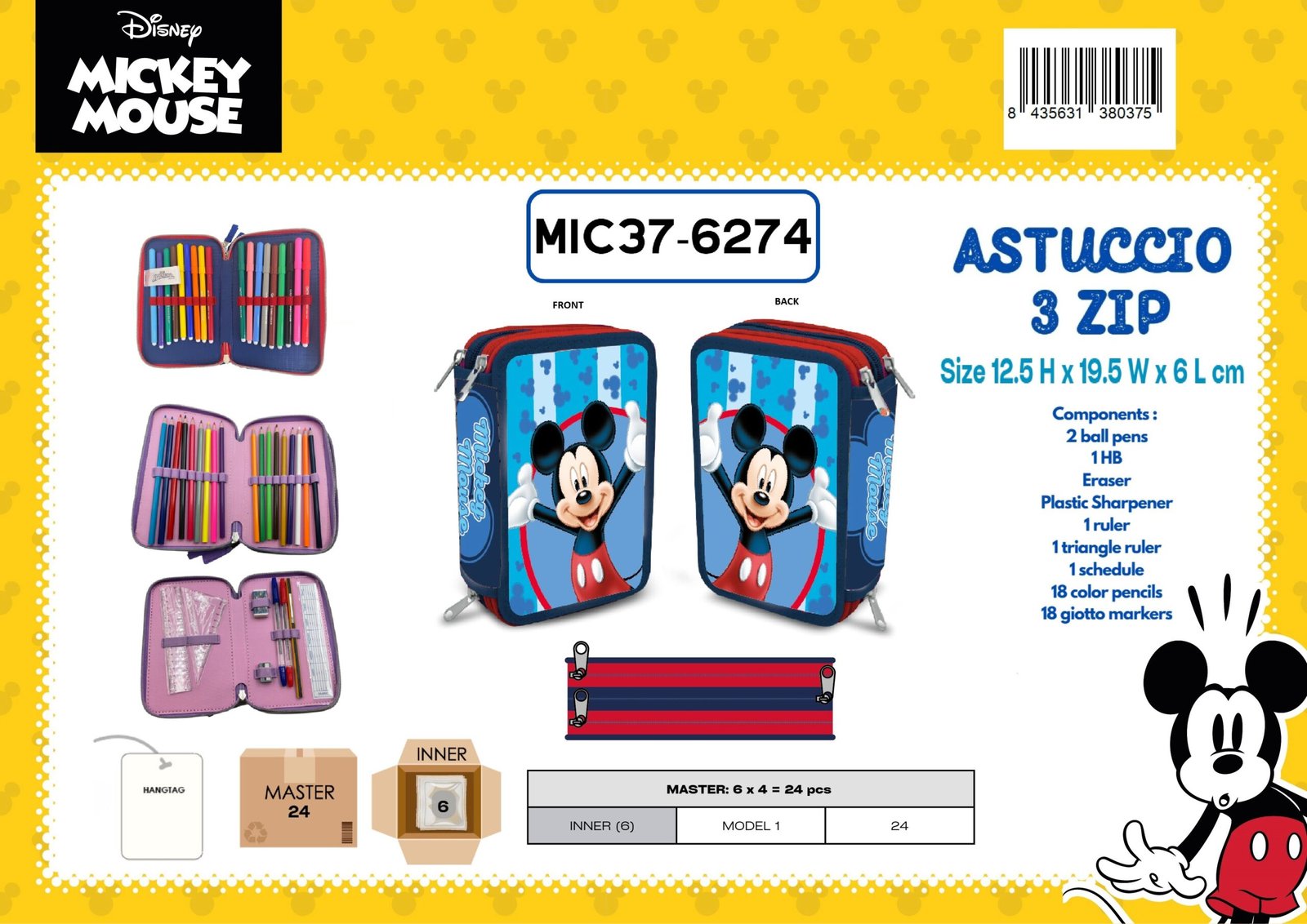 ASTUCCIO 3 ZIP MICKEY DISNEY 19,5Wx12,5Hx6L cm