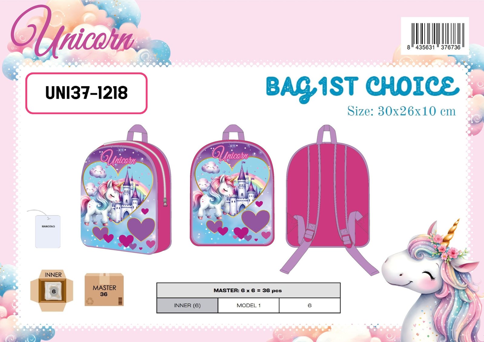 BAG 1ST CHOICE 30CM UNICORN 30X26X10 CM