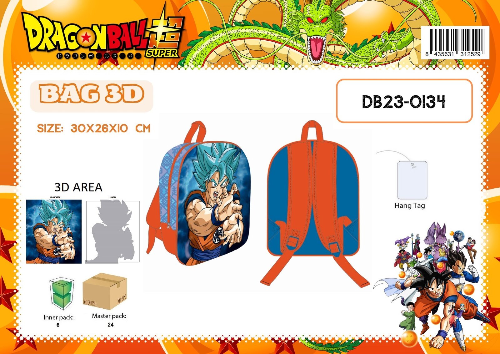 BAG 3D BASIC DRAGON BALL 30X26X10 CM