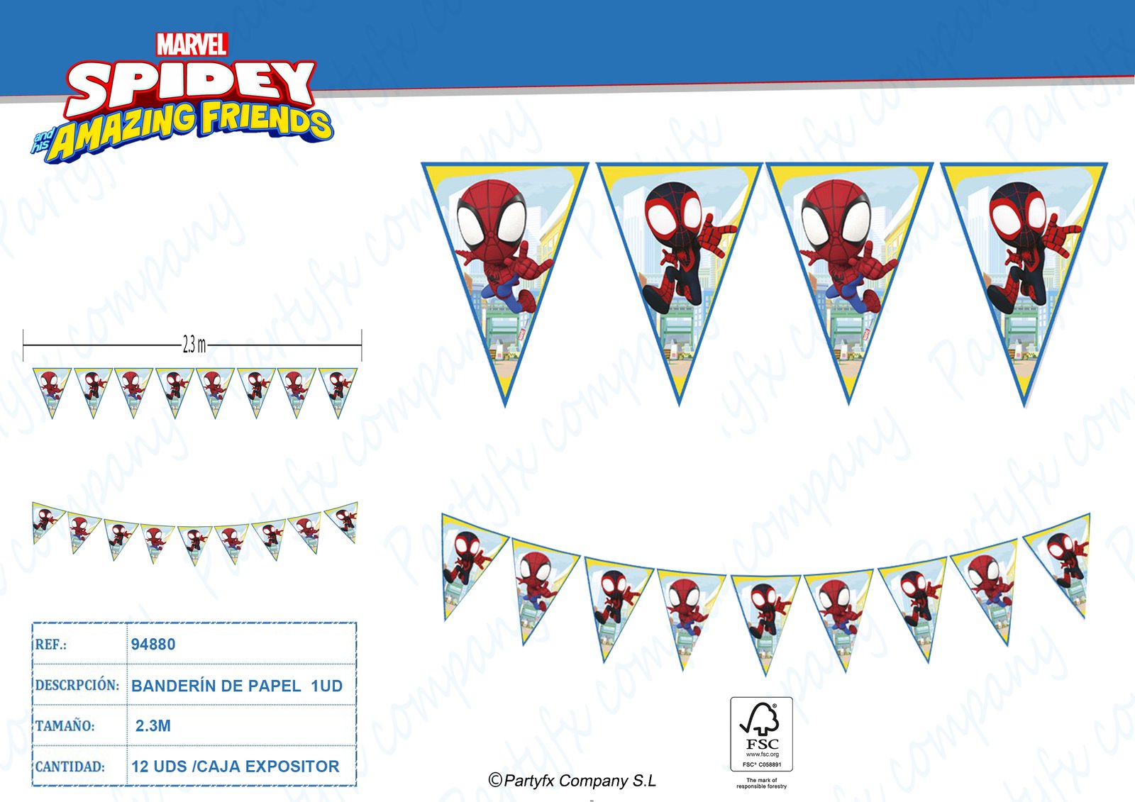 BANDERIN DE PAPEL 2.3M FSC DE SPIDEY AND HIS AMAZING FRIENDS MARVEL