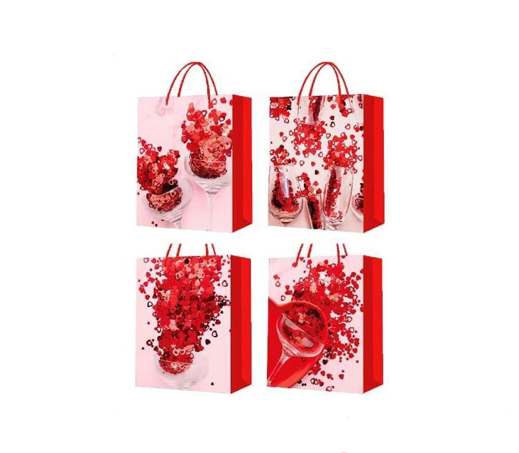 Bolsas de regalo de San Valentin con diseños romanticos y colores vivos.Disponibles en varios tamanos para diferentes tipos de obsequios.Perfectas para tiendas, detalles especiales y eventos tematicos.