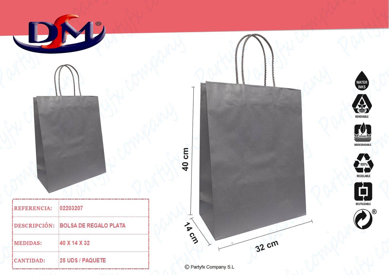 BOLSA .REGALO PAPEL PLATA «L» 32+14×40