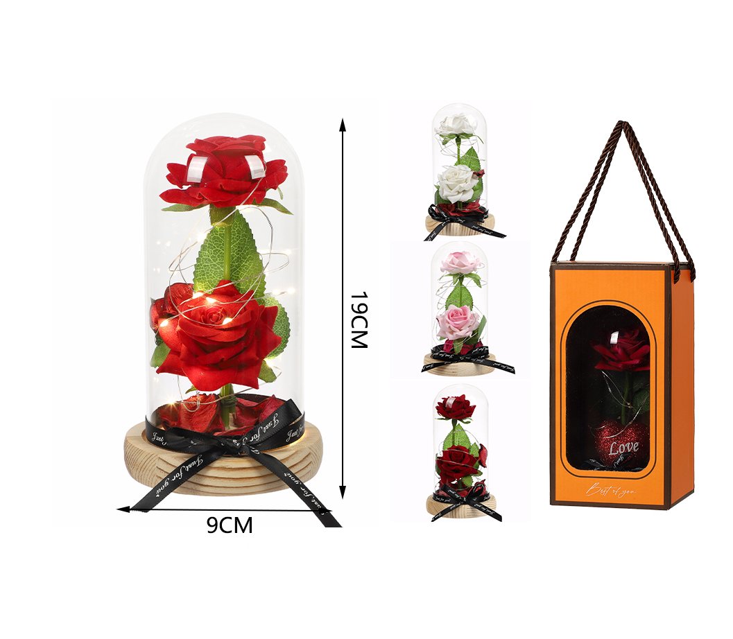 Elegantes flores preservadas dentro de una cúpula de cristal, combinadas con detalles decorativos y base de madera. Cada pieza incluye iluminación LED suave, ideal para crear un ambiente romántico y sofisticado. Perfecto para regalos, decoración del hogar y ocasiones especiales.