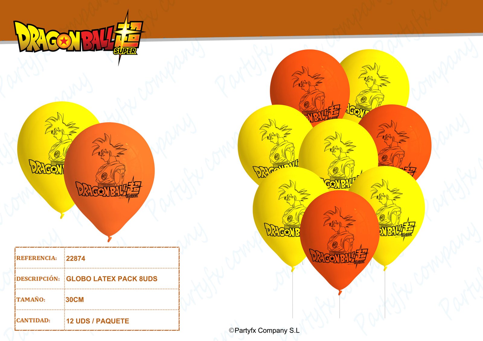 GLOBO LATEX 27CM DE DRAGON BALL PACK 8UDS