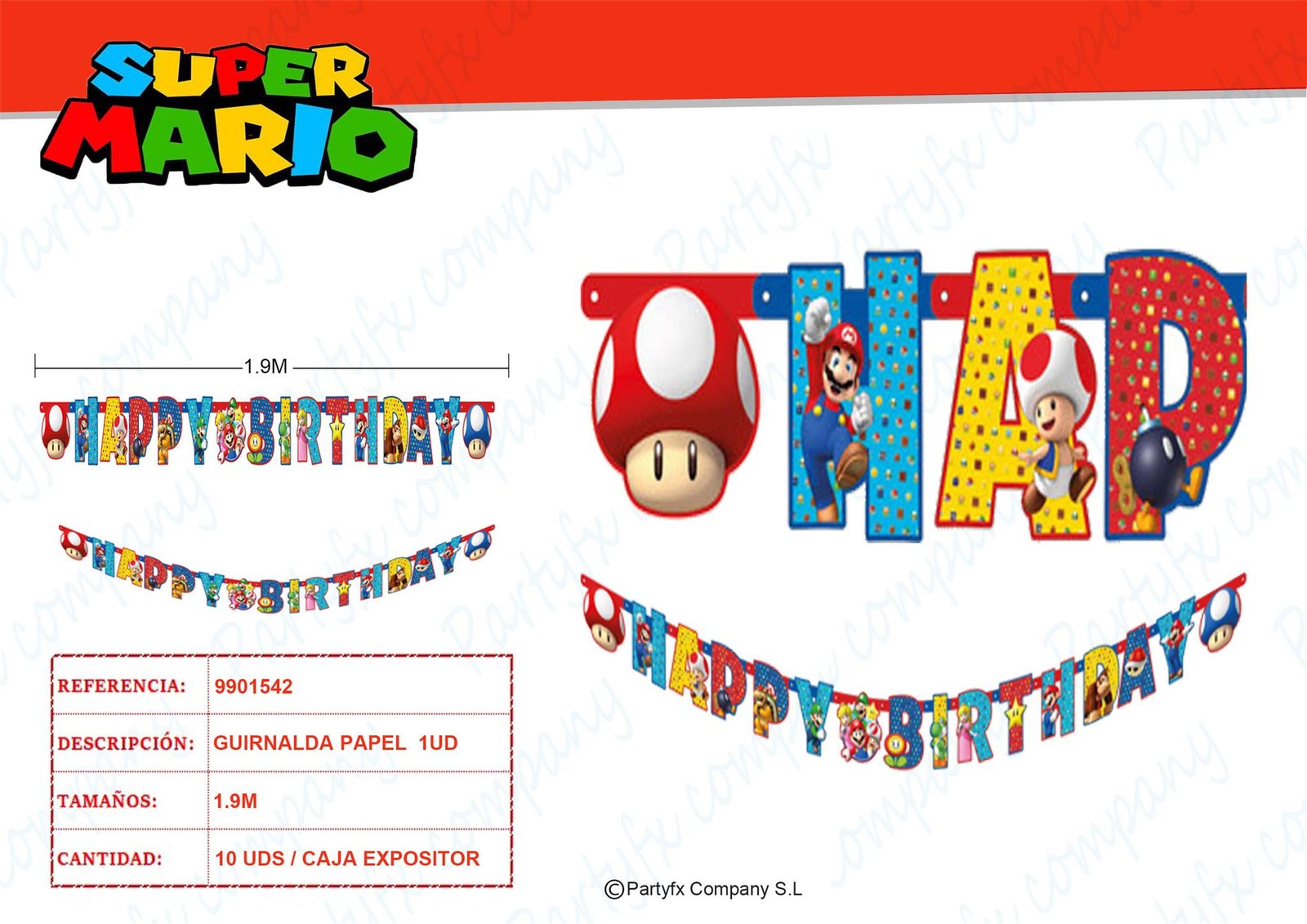 Letter Banner Super Mario Paper 190 x 15 cm