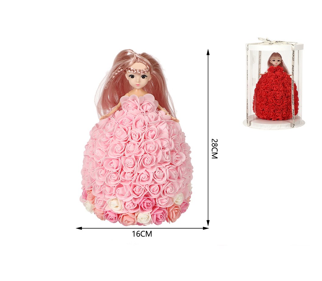 Muñeca con rosas 28 cm rosa degradado