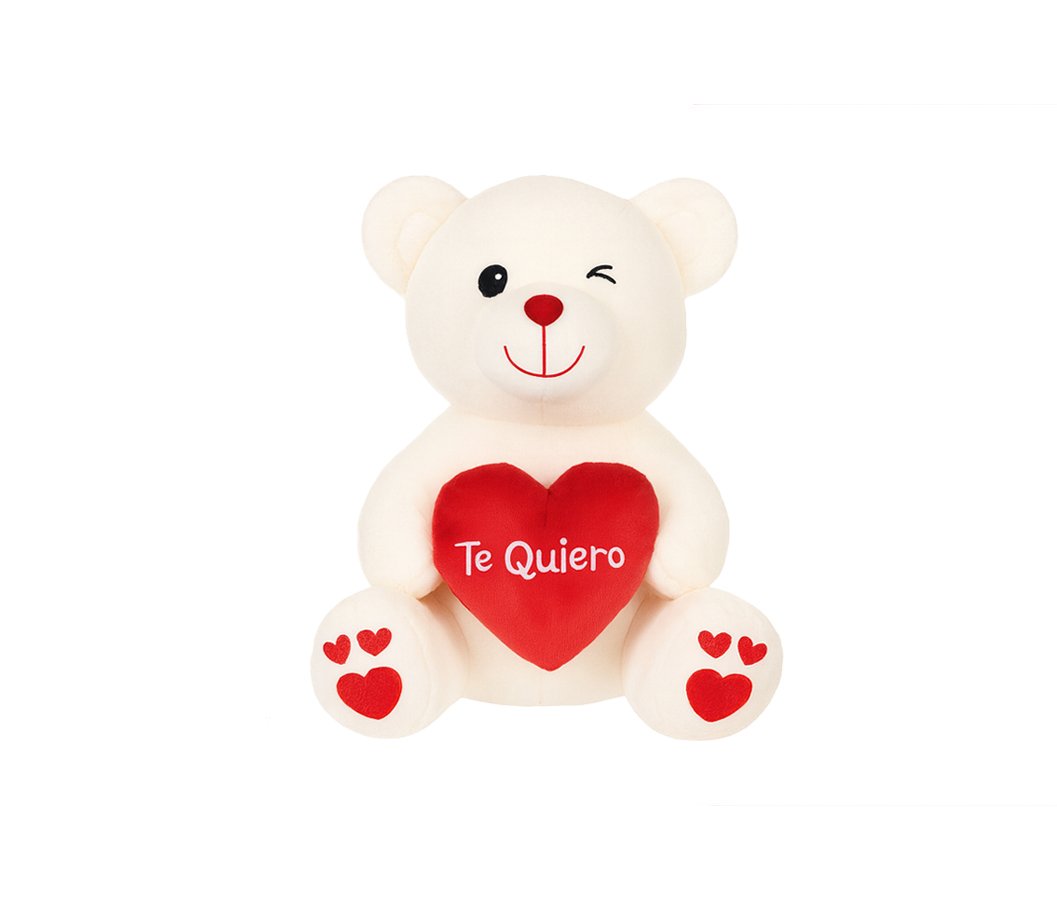 Osito de peluche suave, disponible en varios tamaños y colores, con corazón o globo decorativo. Un diseño clásico y tierno, ideal para regalos románticos y campañas de San Valentín.