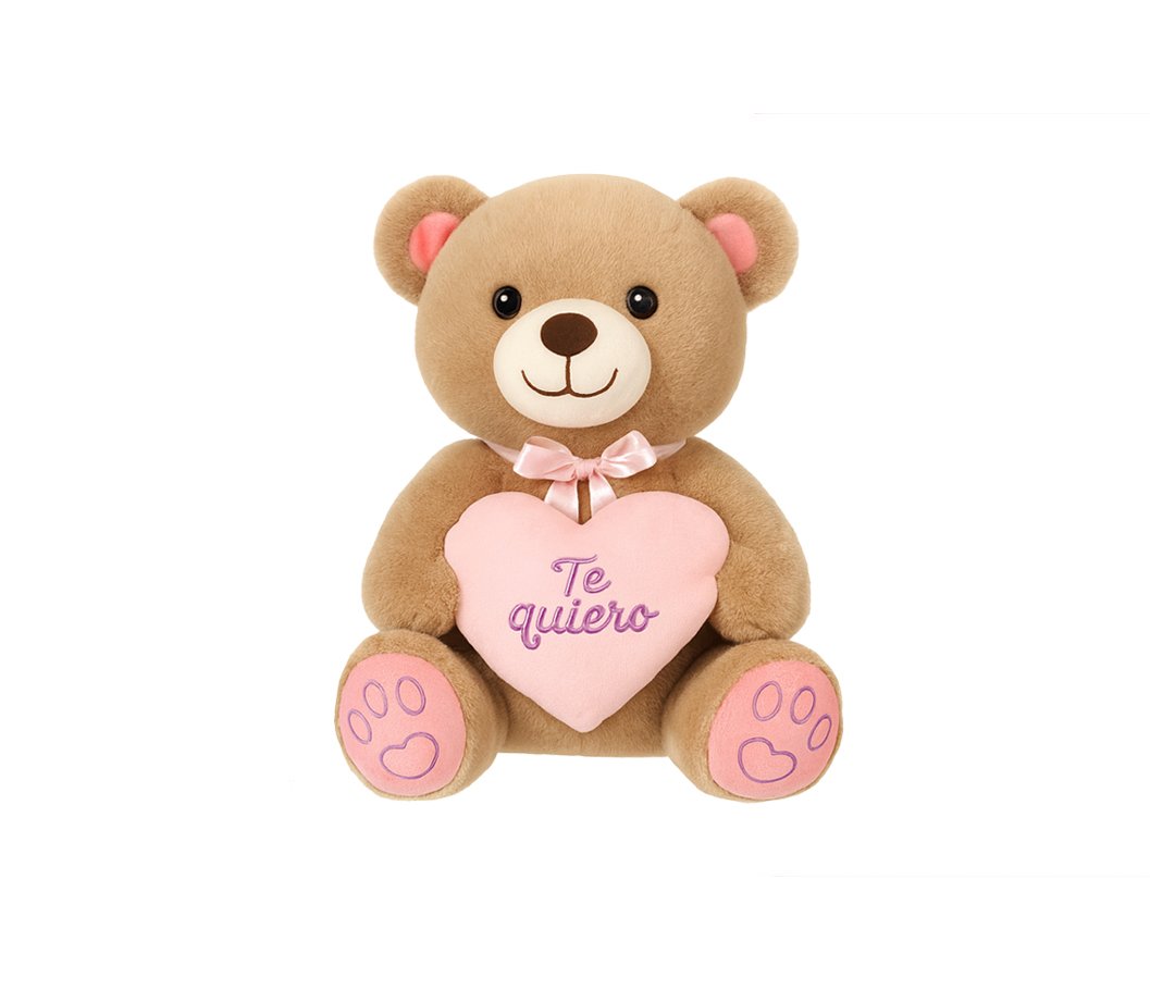 Osito de peluche suave, disponible en varios tamaños y colores, con corazón o globo decorativo. Un diseño clásico y tierno, ideal para regalos románticos y campañas de San Valentín.