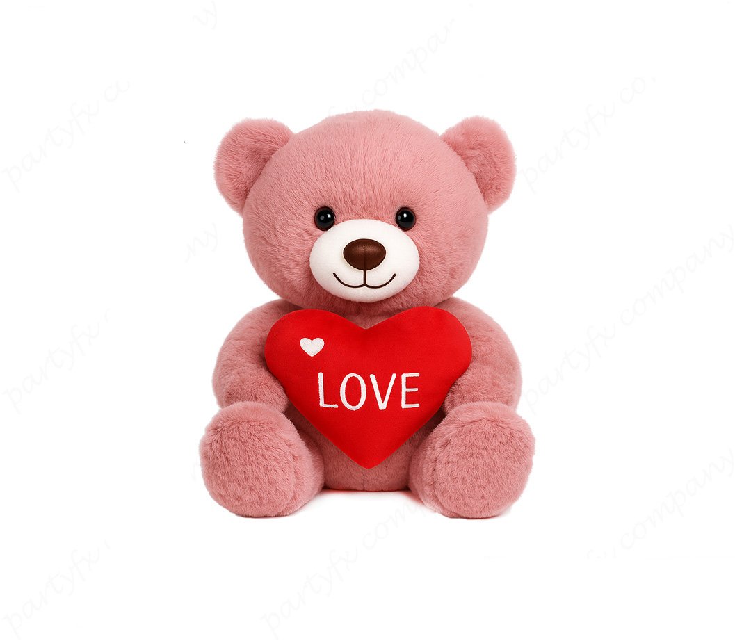 Osito de peluche suave, disponible en varios tamaños y colores, con corazón o globo decorativo. Un diseño clásico y tierno, ideal para regalos románticos y campañas de San Valentín.