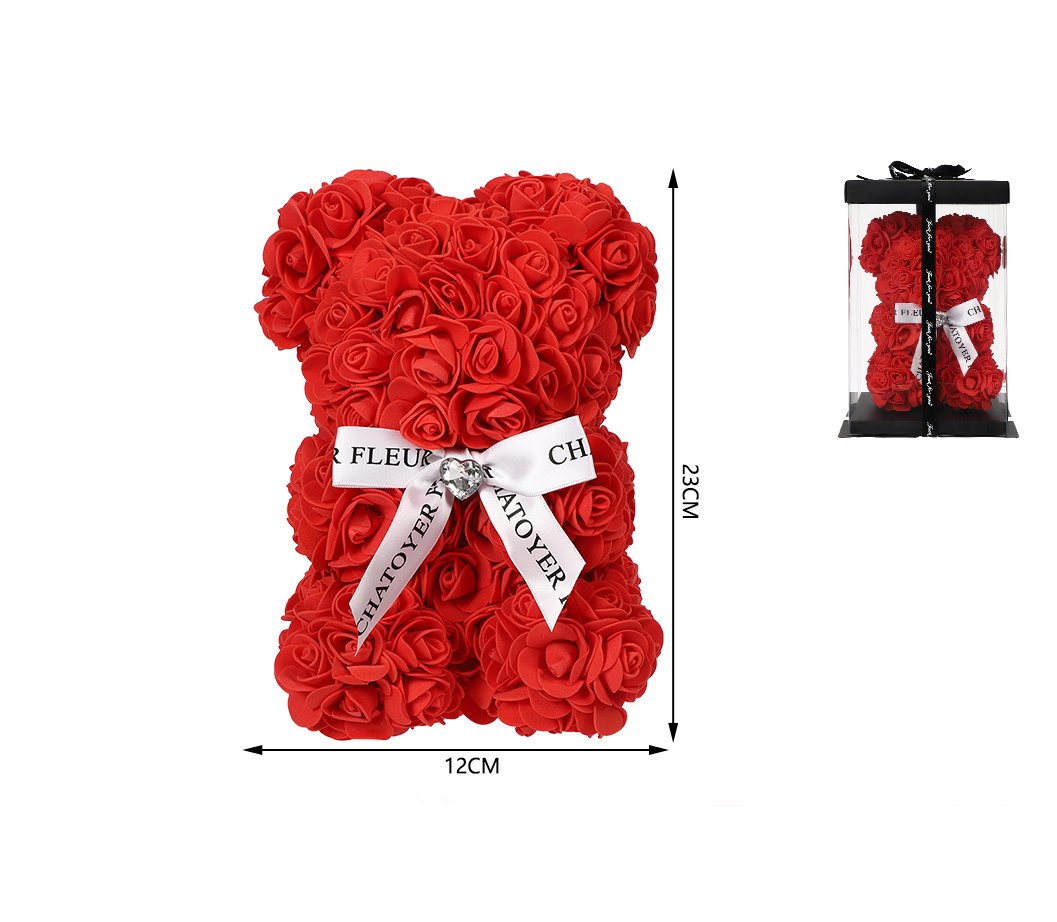 Oso premium de rosas en caja 12*23 cm rojo