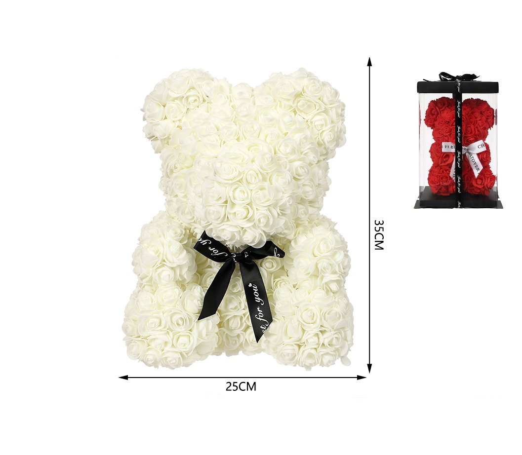 Oso premium de rosas en caja 25*35 cm blanco crema