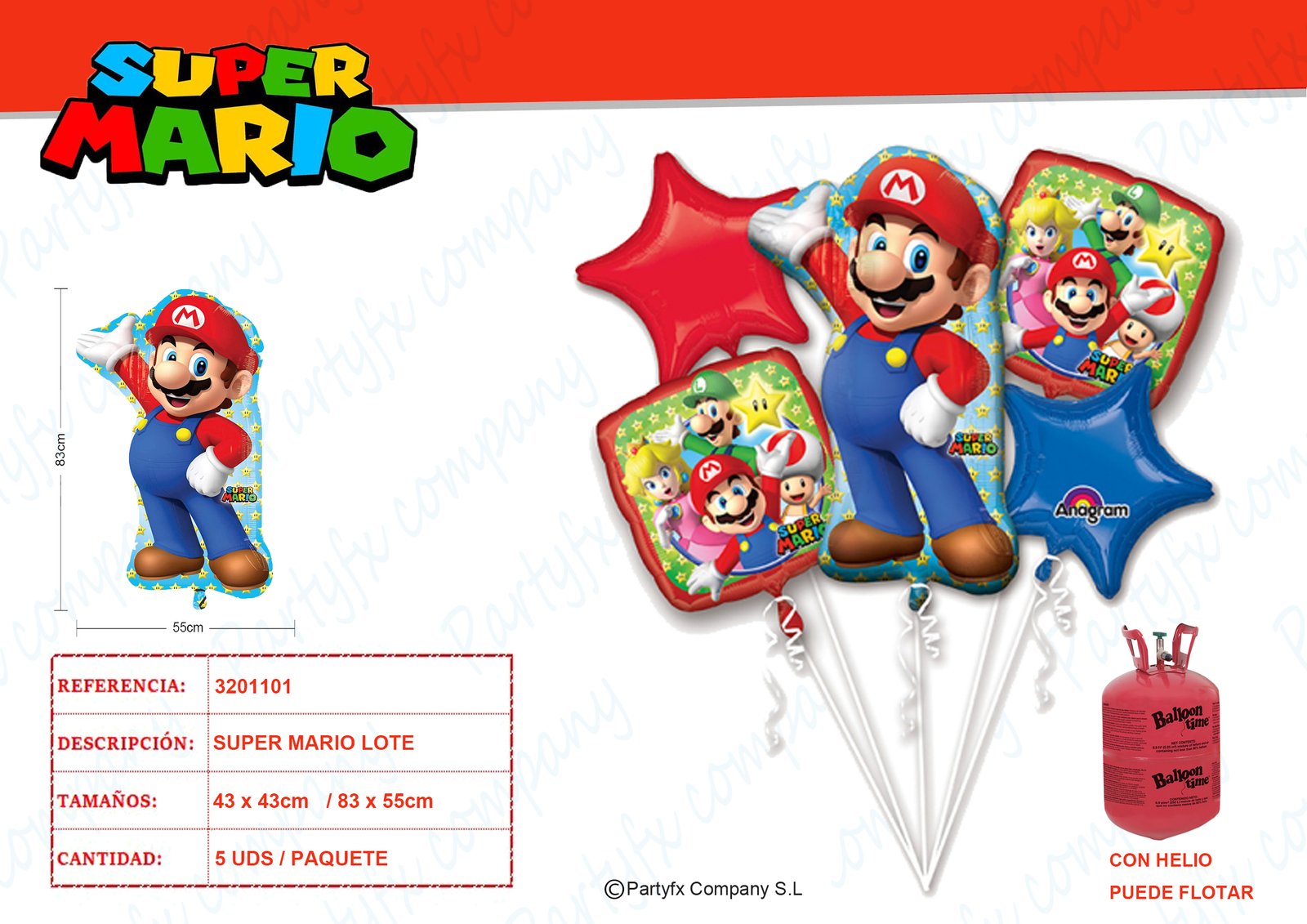 Paquete Mario Bros 5 Globo foil