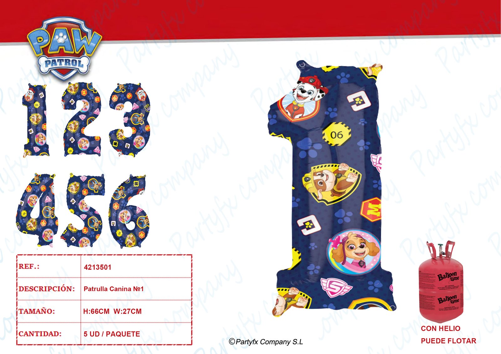 Paw Patrol Number 1 Globo foil 27cm x 66cm
