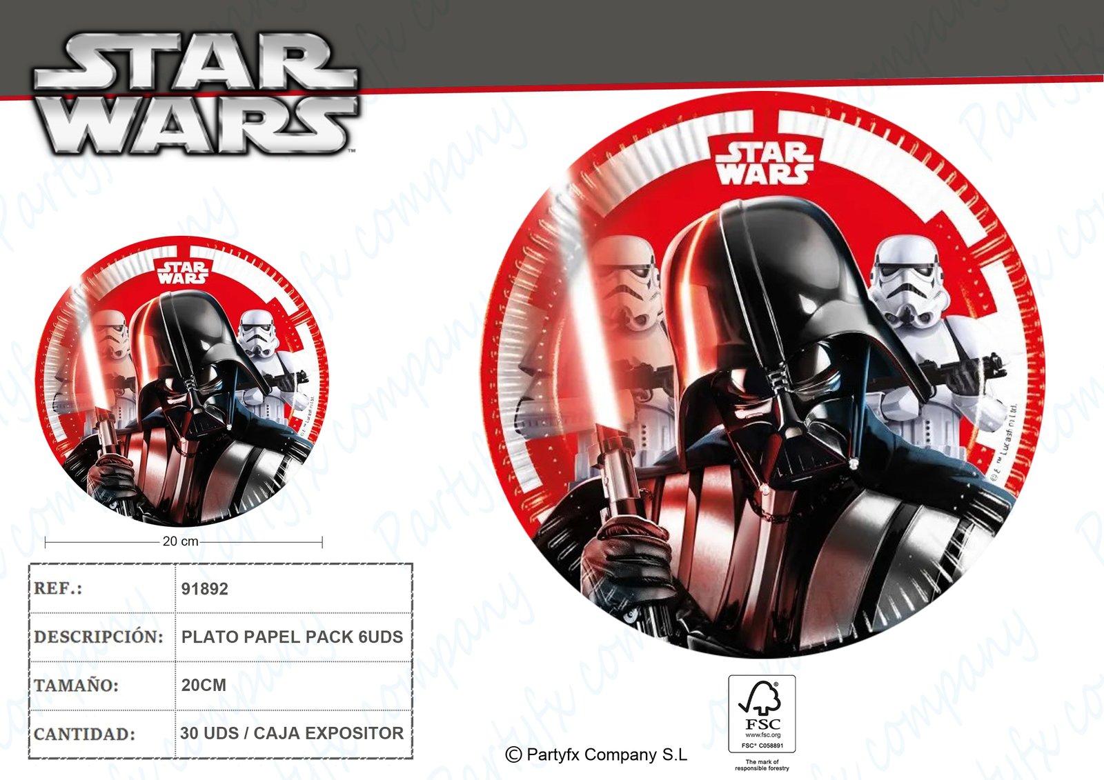 PLATOS DE PAPEL 20CM STAR WARS PK-6UDS