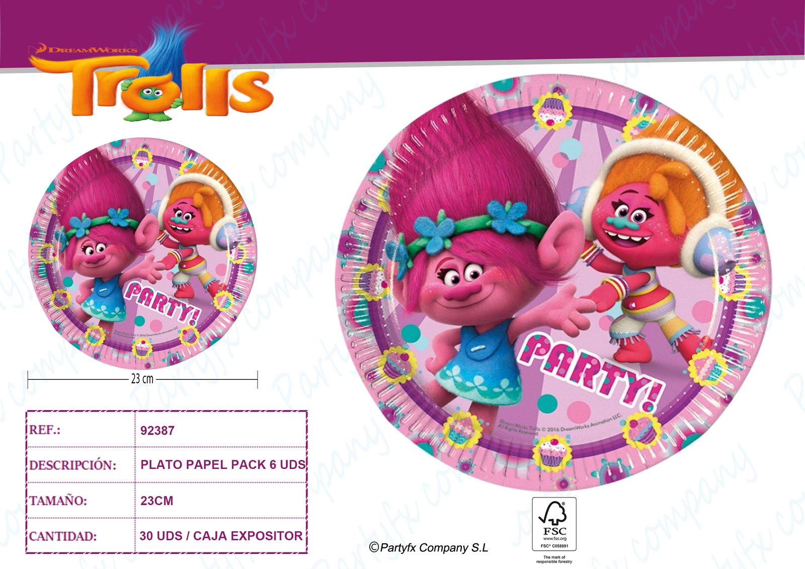 PLATOS DE PAPEL 23CM TROLLS PK-6UDS