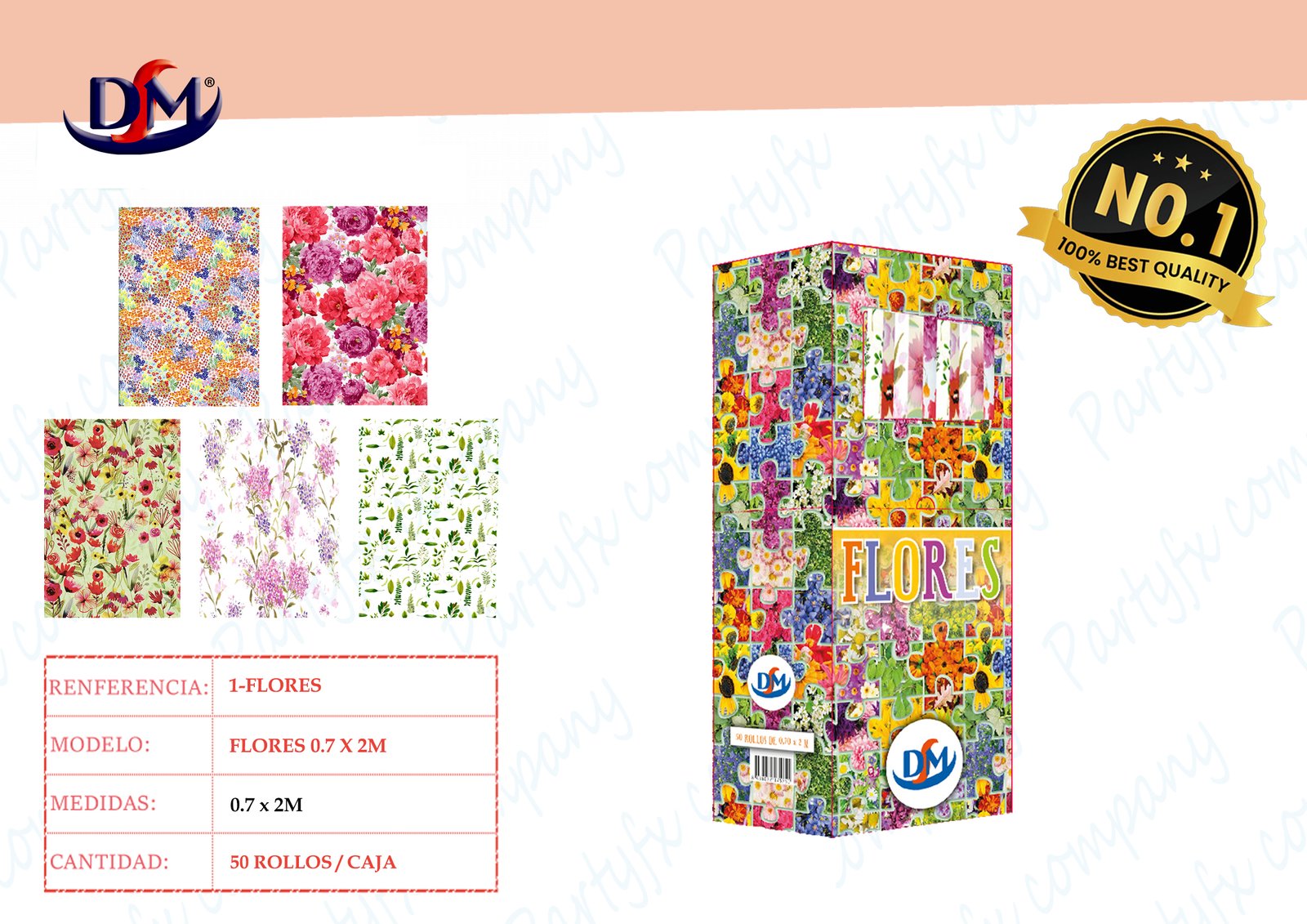 ROLLOS PAPEL FLORES 2M X 0.7M