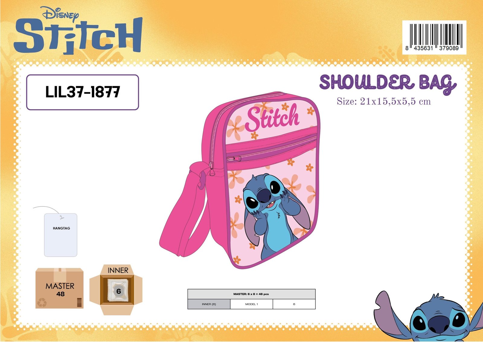 SHOULDER BAG LILO AND STITCH DISNEY PINK 21X15,5X5,5CM