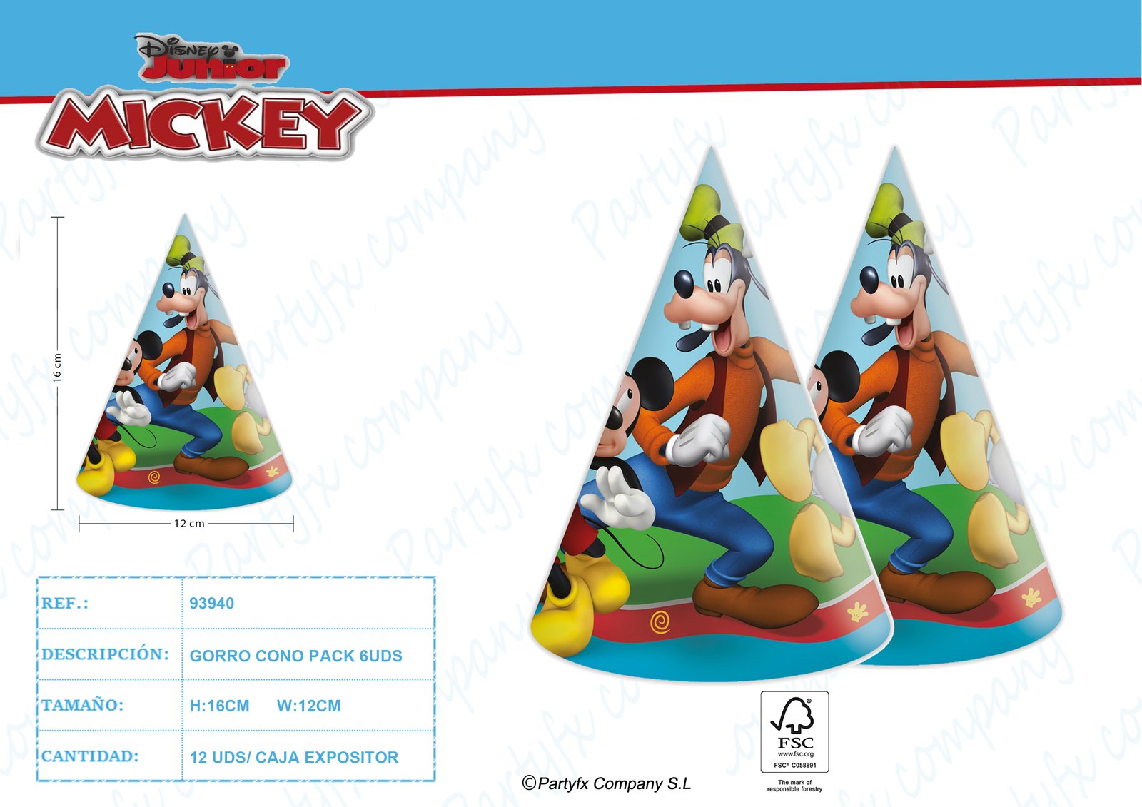 SOMBRERO PAPEL DE MICKEY ROCK THE HOUSE 6UDS