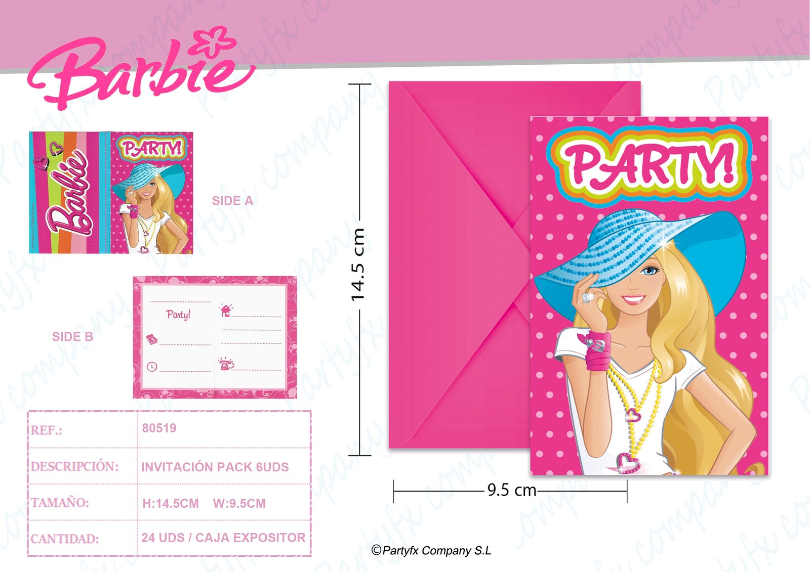 TARJETA DE INVITACION DE BARBIE 6UDS