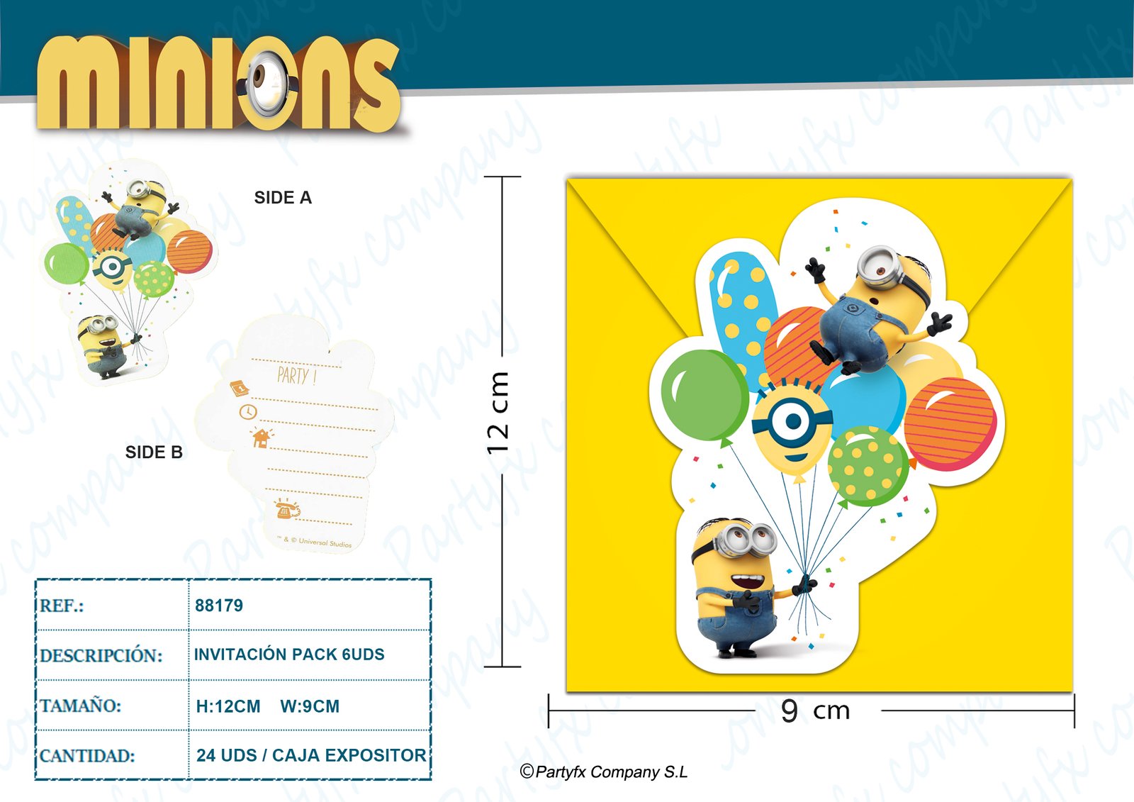 TARJETA DE INVITACION DE MINIONS BALLOONS 6UDS