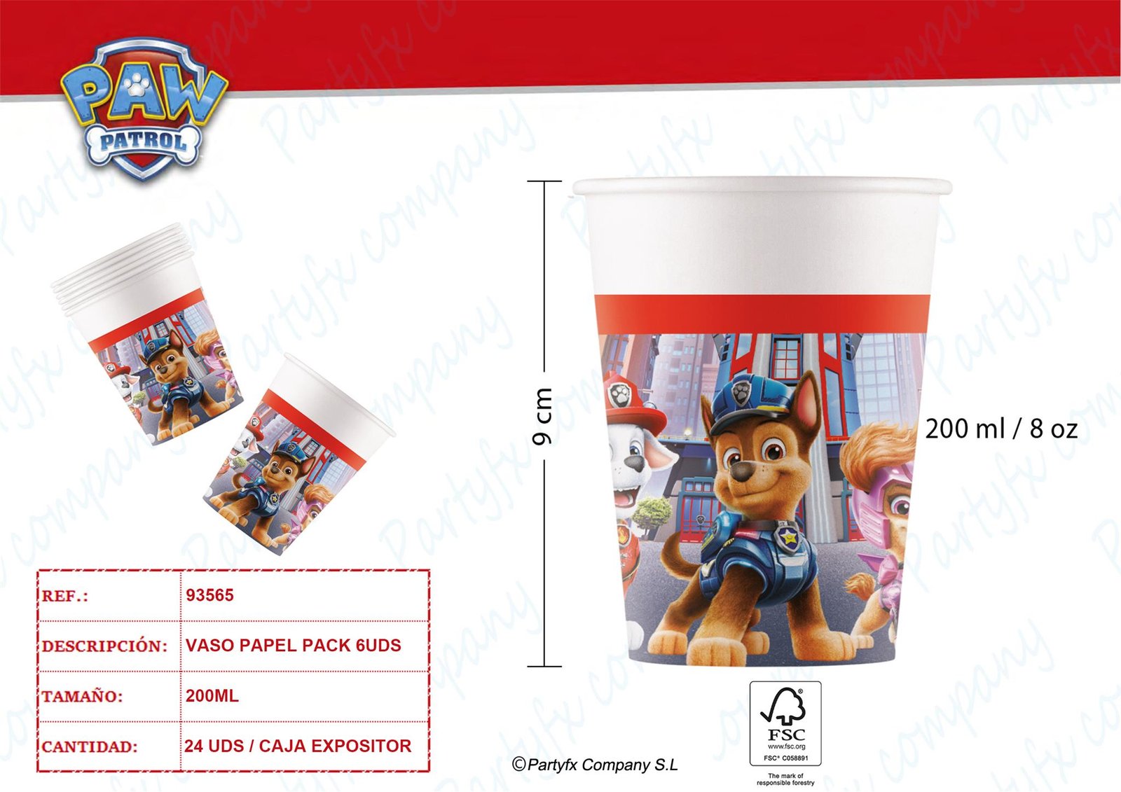 VASO PAPEL 200ML FSC PAW PATROL THE MOVIE 6UDS
