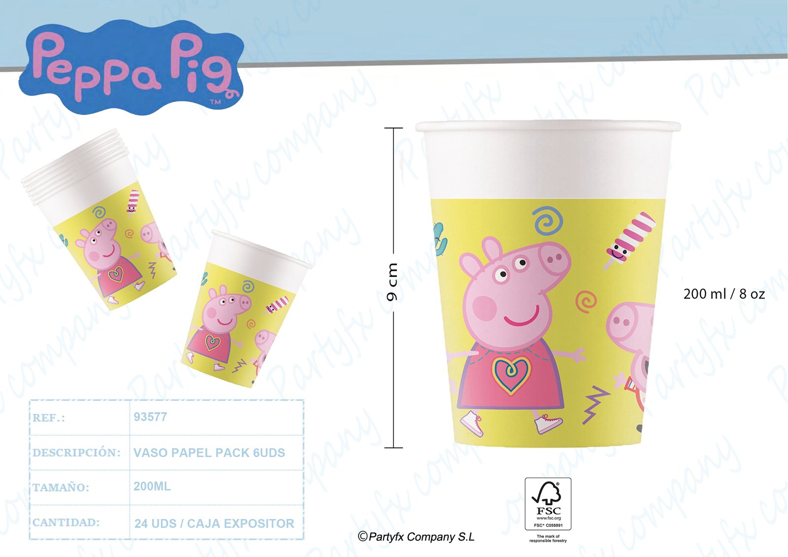 VASO PAPEL 200ML PEPPA PIG MESSY PLAY FSC 6UDS
