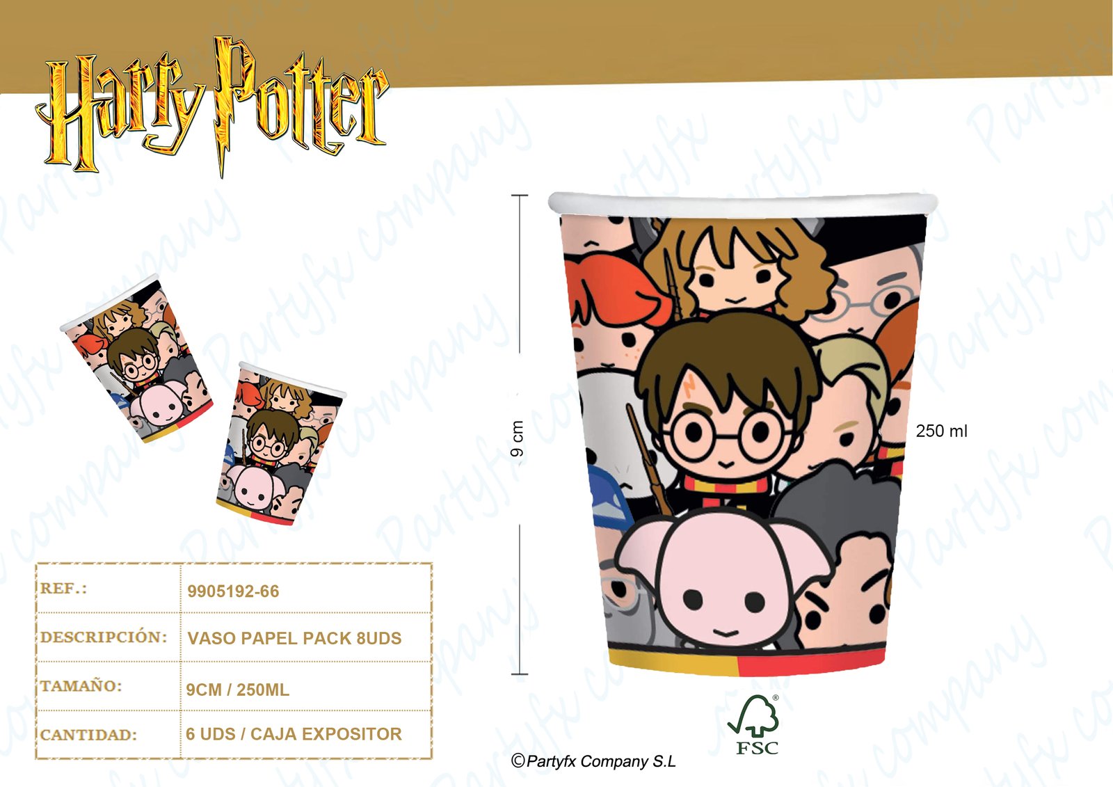 VASO PAPEL 250ML FSC DE HARRY POTTER WARNER 8UDS