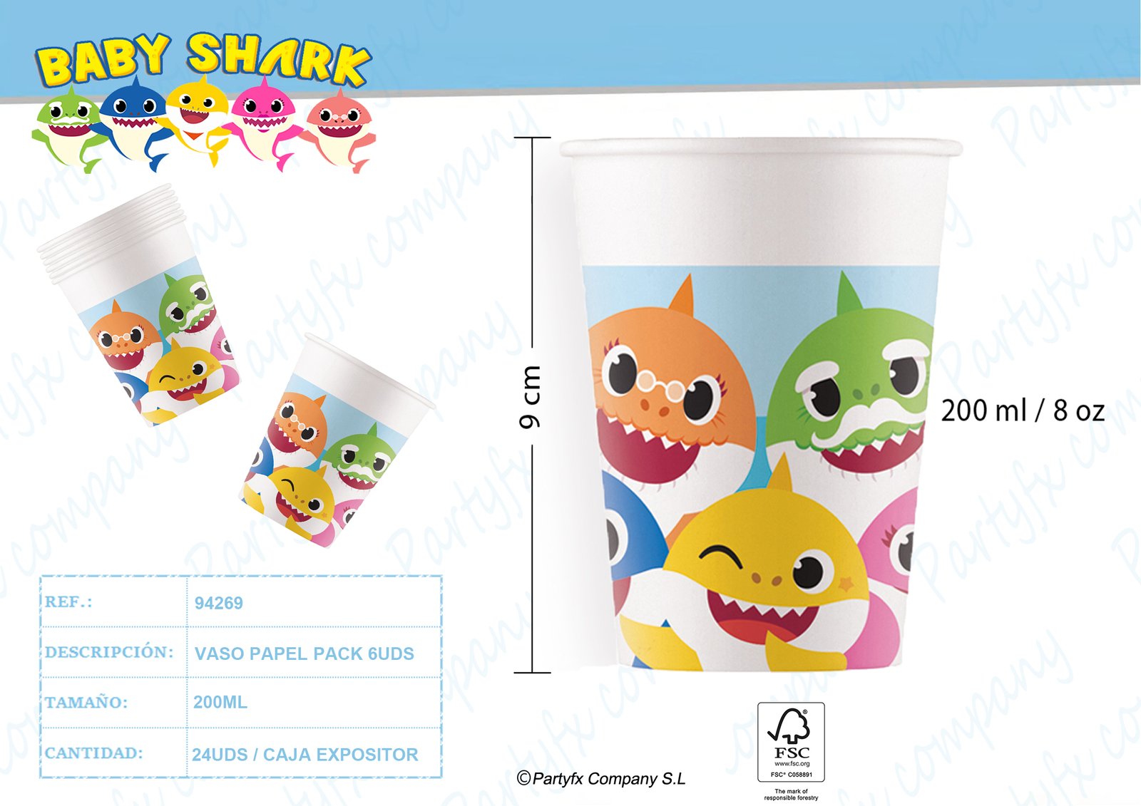 VASOS DE PAPEL BABY SHARK PK-6UDS