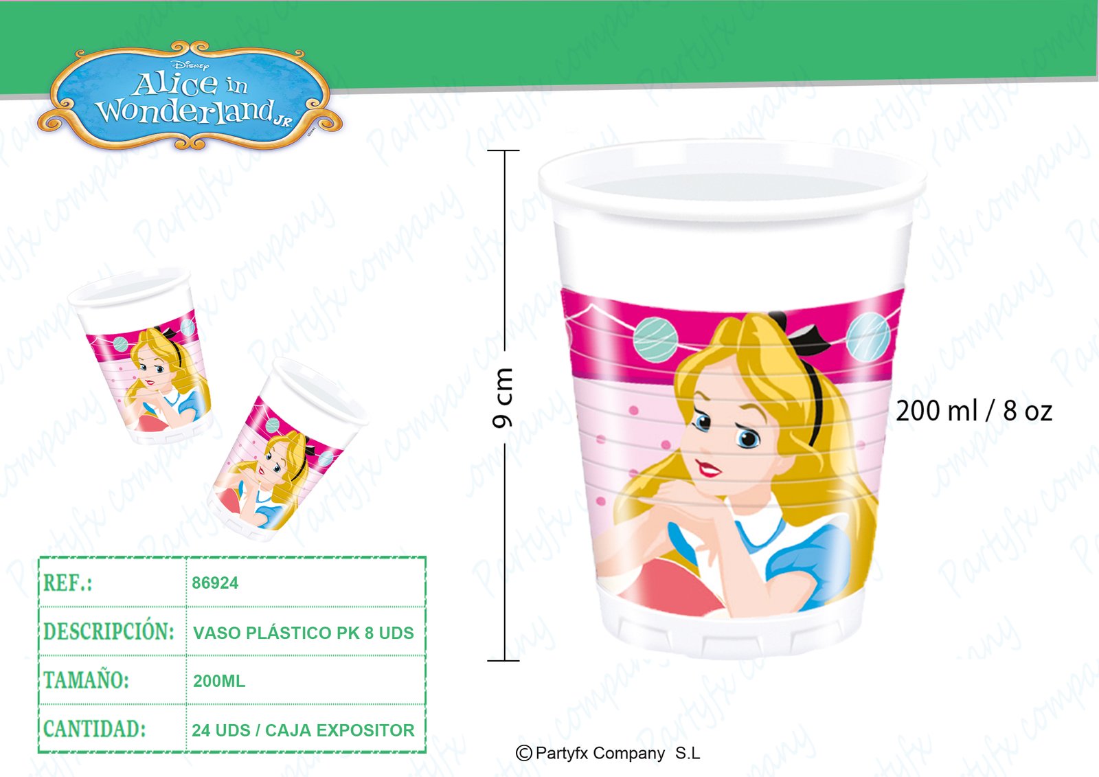 VASOS DE PLASTICO 200ML ALICE IN WONDERLAND PK-8UDS