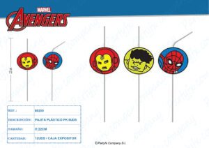 PAJITAS DE PLASTICO AVENGERS TEAM MARVEL PK-6UDS