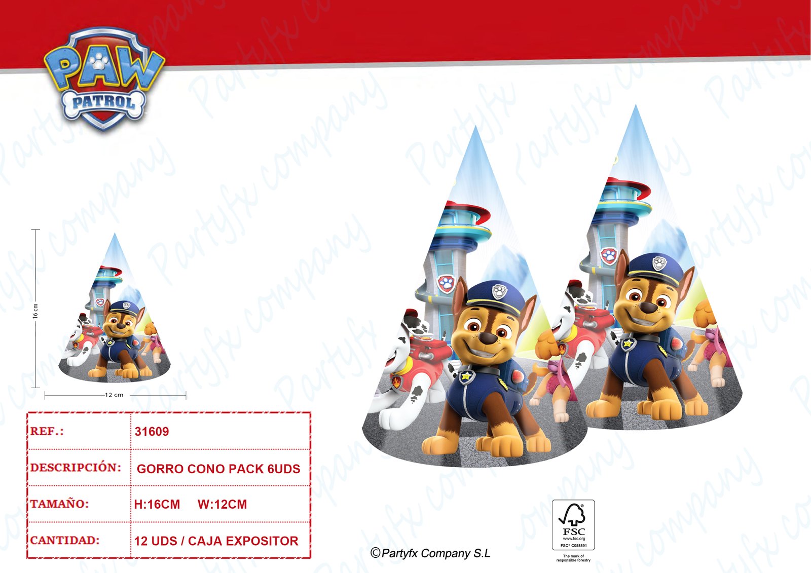 6 GORROS CONO 12X16CM PATRULLA CANINA