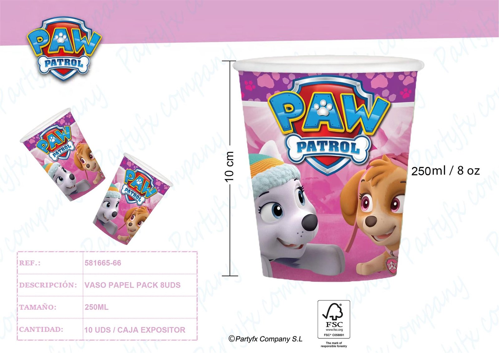 8 Cups Pink Paw Patrol Paper 250 ml