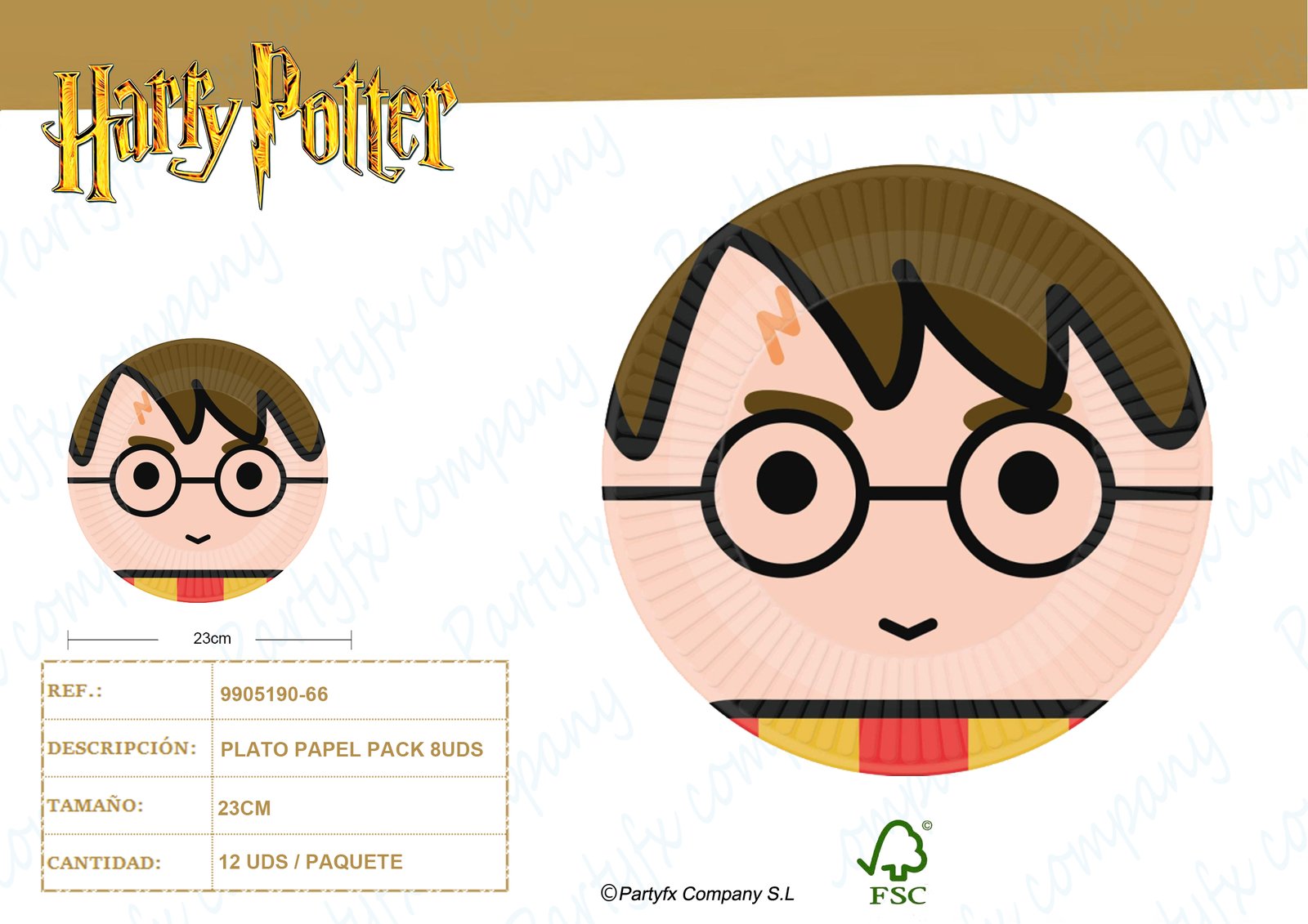 8 Platos Harry Potter redondo papel 23 cm