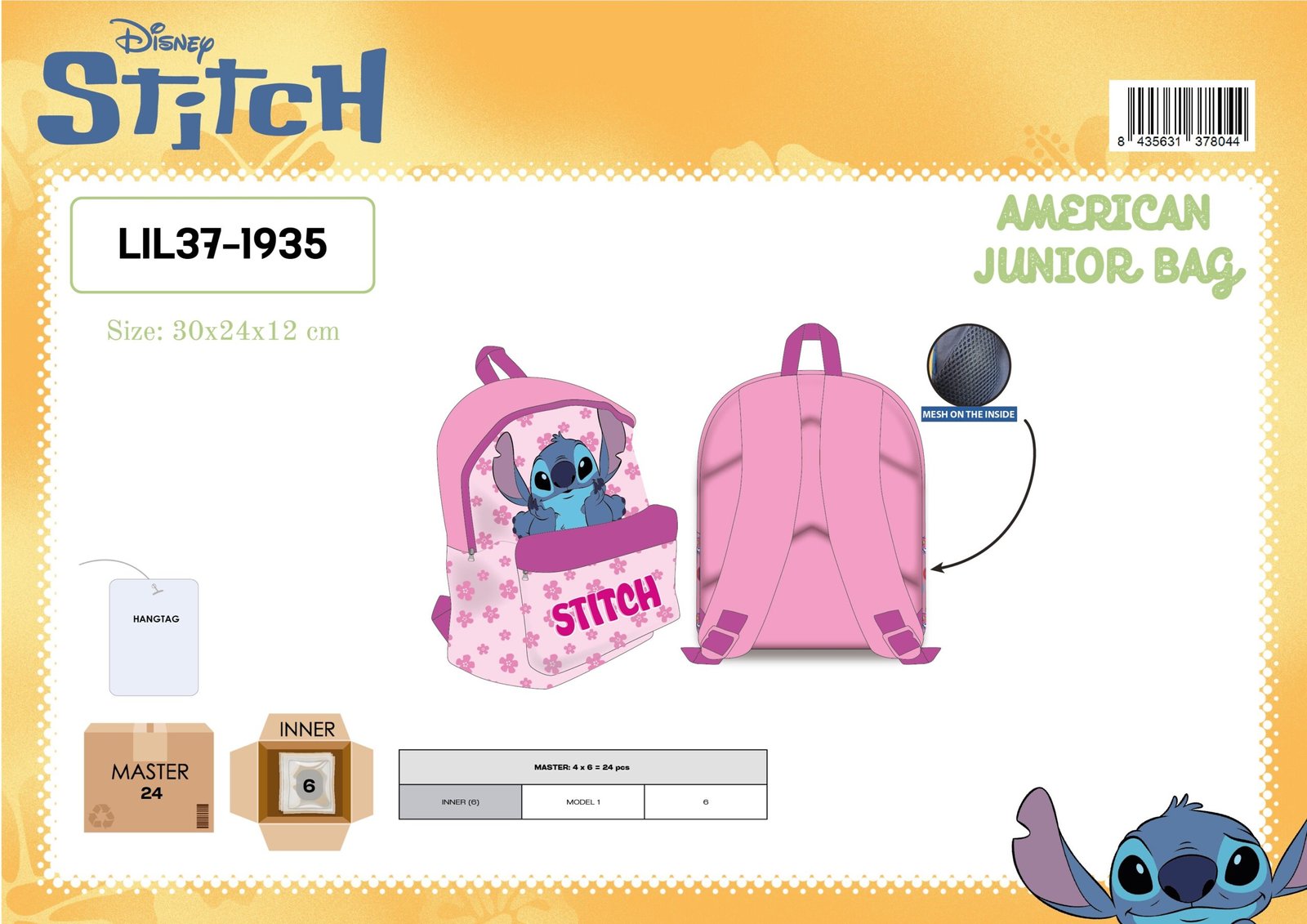 AMERICAN JUNIOR BAG LILO AND STITCH DISNEY PINK 30X24X12 CM