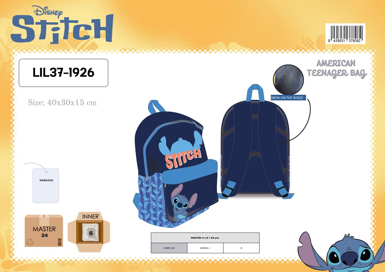 AMERICAN TEENAGER BAG LILO AND STITCH DISNEY BLUE 40X30X15 CM