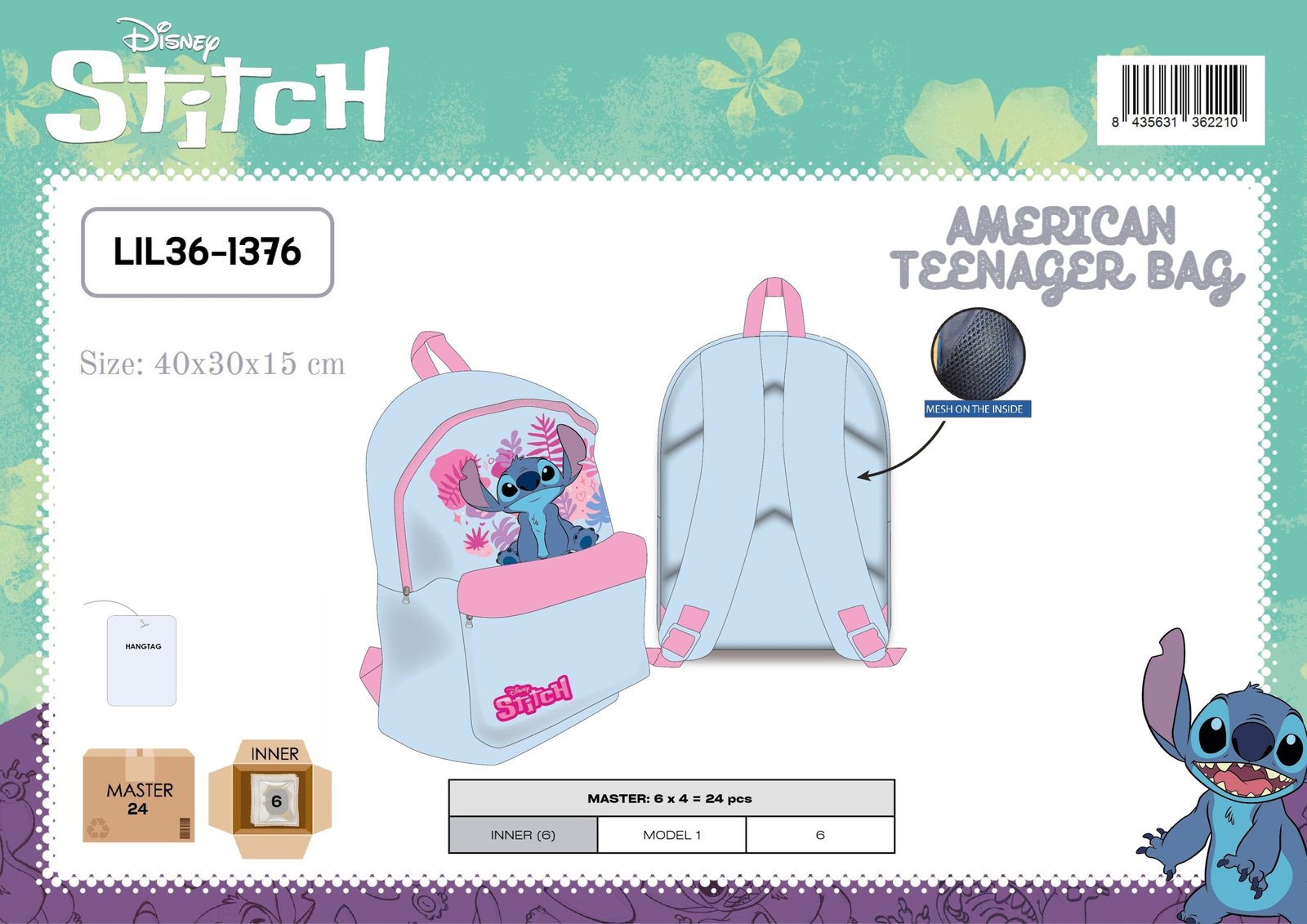 AMERICAN TEENAGER BAG LILO AND STITCH DISNEY PINK 40X30X15 CM