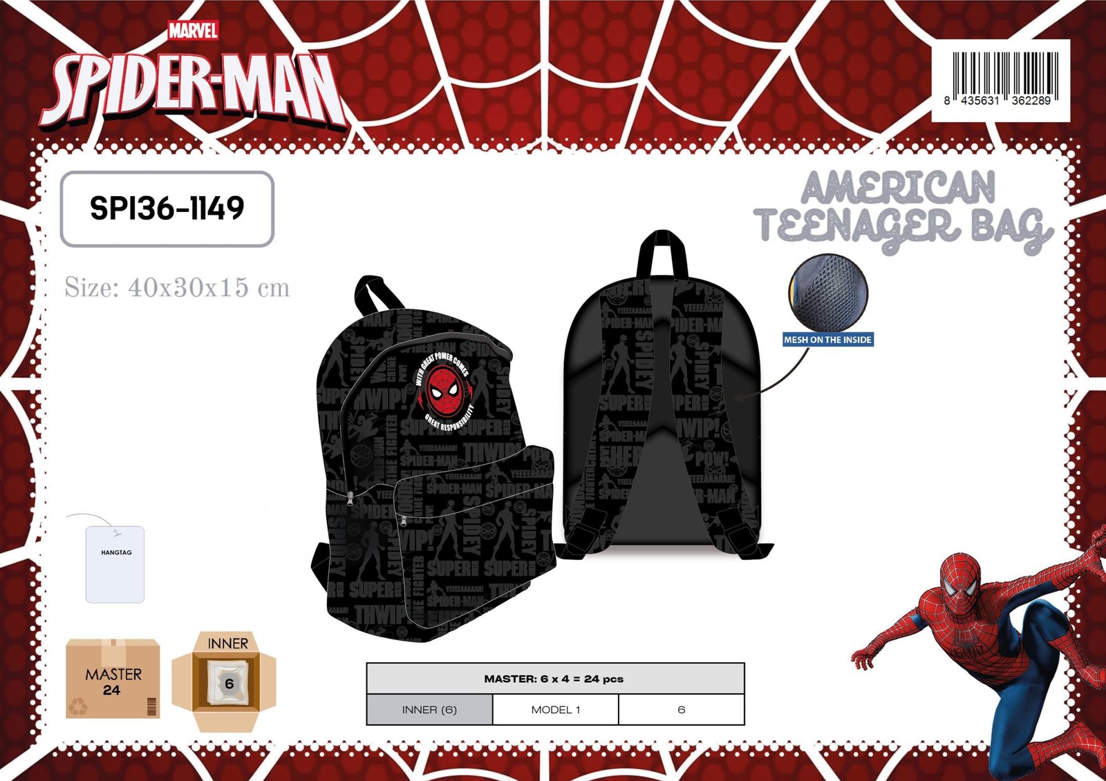 AMERICAN TEENAGER BAG SPIDERMAN DISNEY 40X30X15 CM