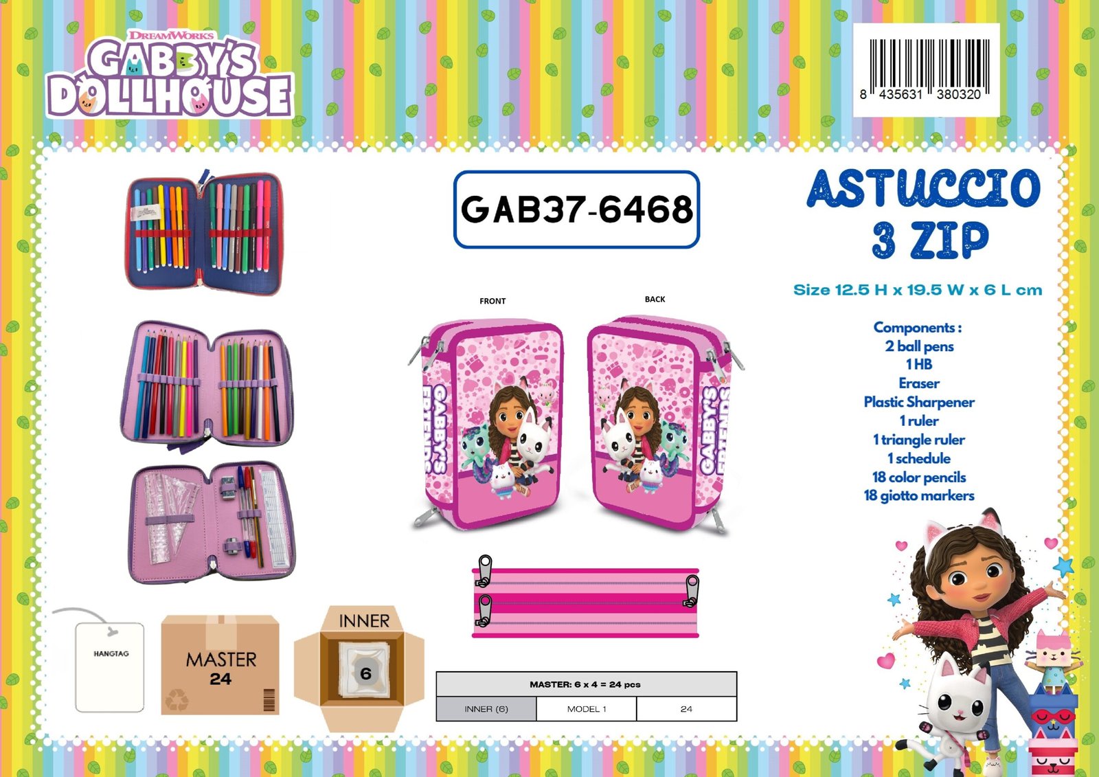 ASTUCCIO 3 ZIP GABBY´S DOLLHOUSE 19,5Wx12,5Hx6L cm