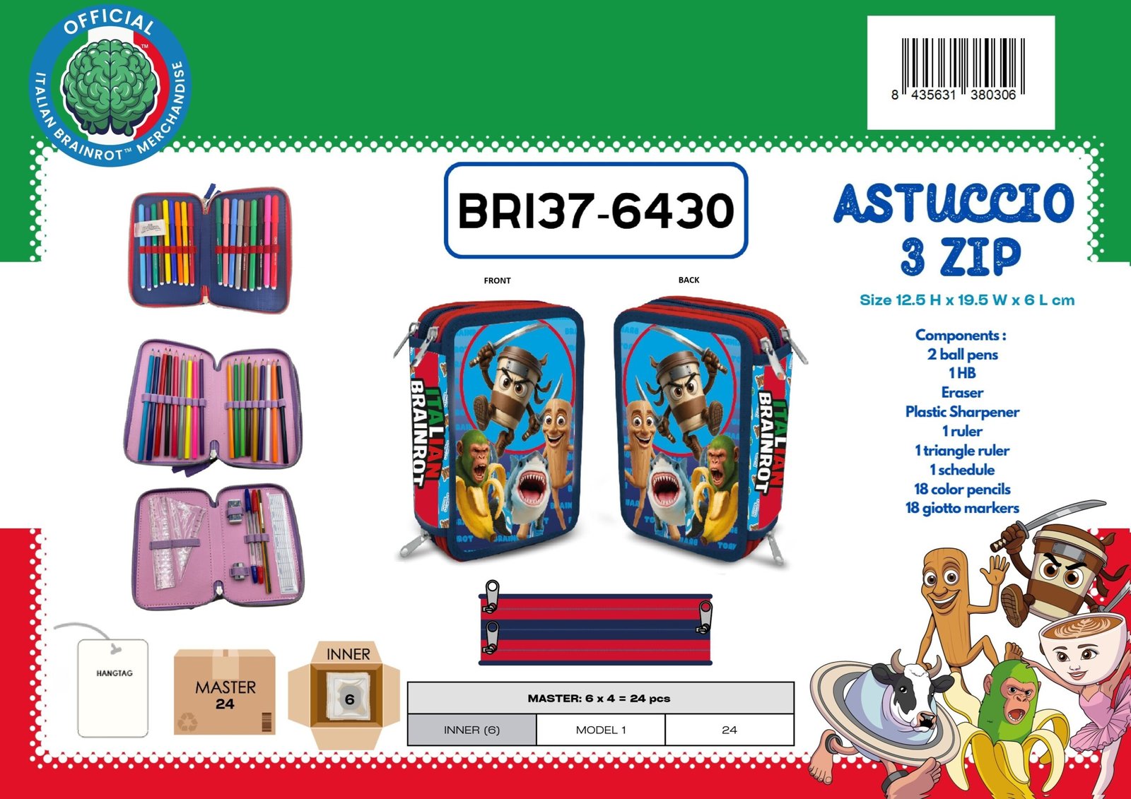 ASTUCCIO 3 ZIP ITALIAN BRAINROT BOY 19,5Wx12,5Hx6L cm