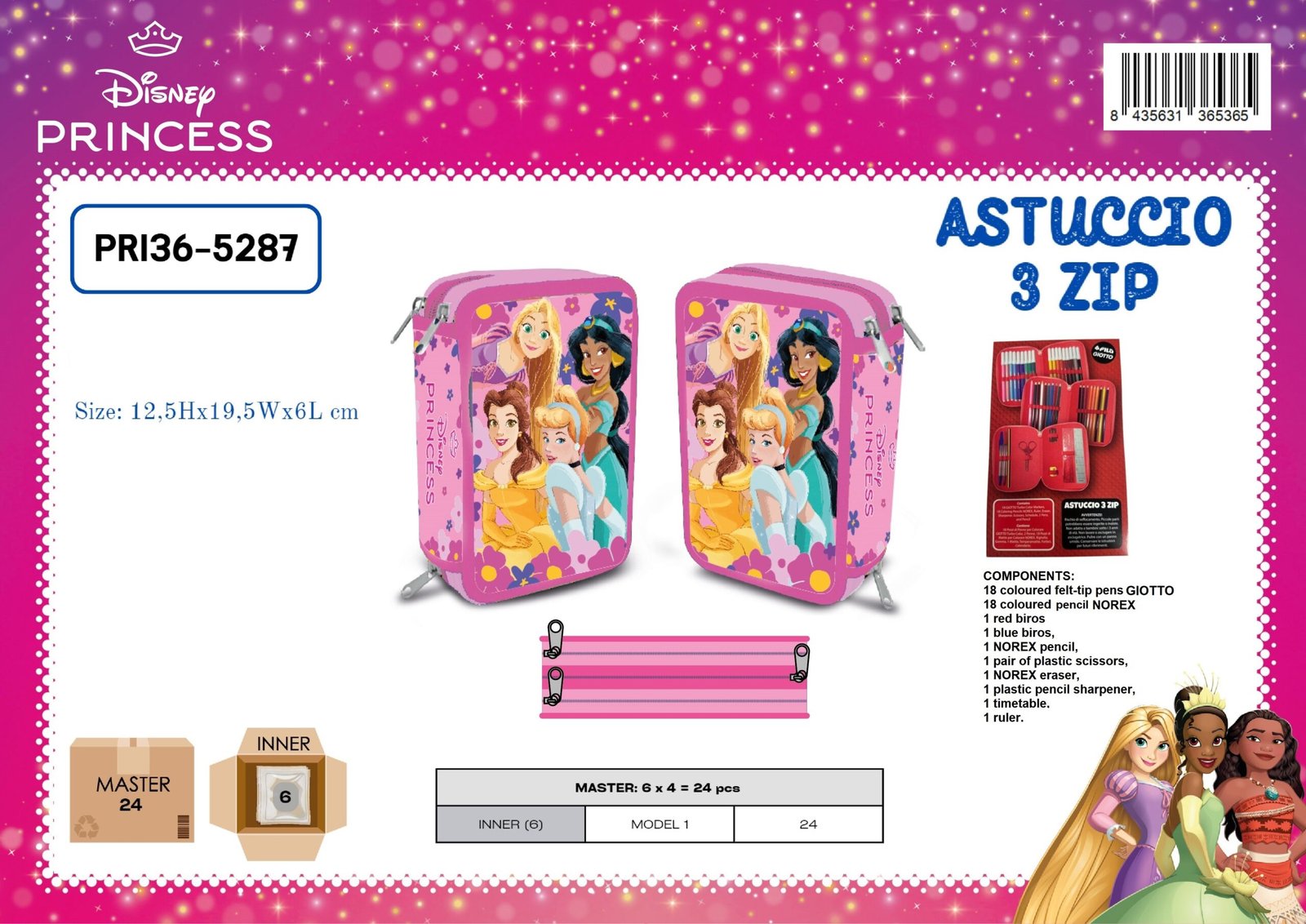 ASTUCCIO 3 ZIP PRINCESS DISNEY 19,5Wx12,5Hx6L cm