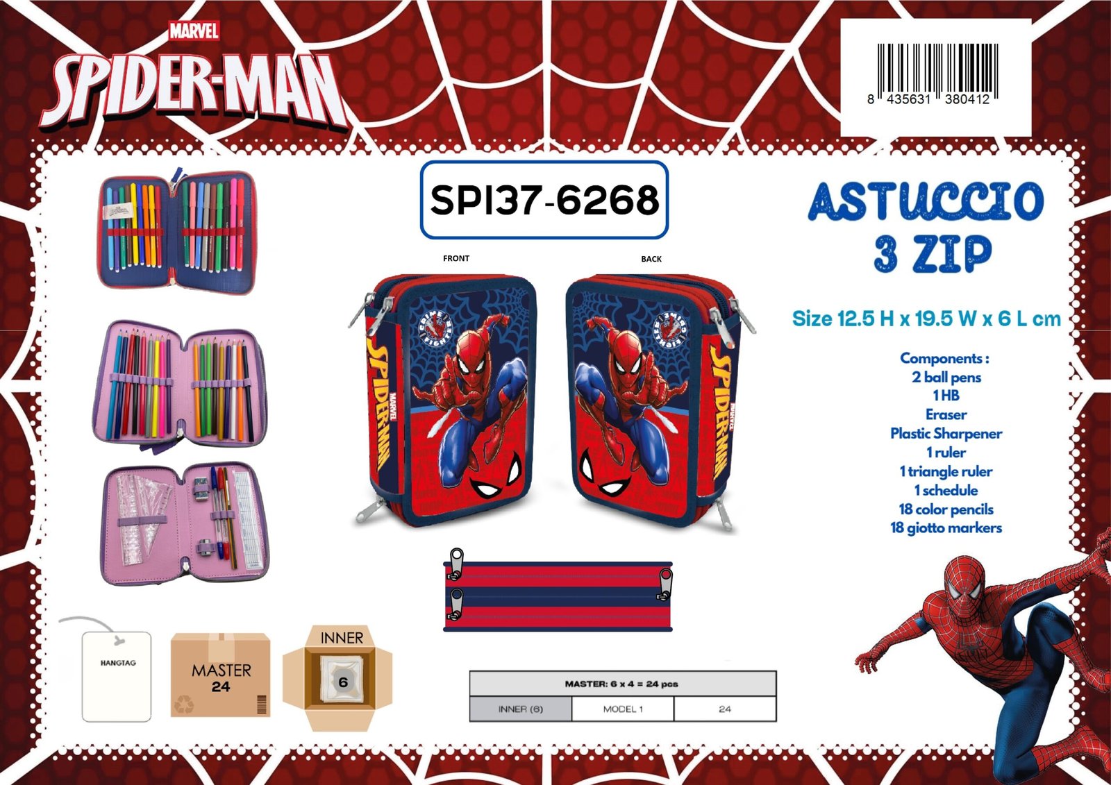 ASTUCCIO 3 ZIP SPIDERMAN DISNEY 19,5Wx12,5Hx6L cm