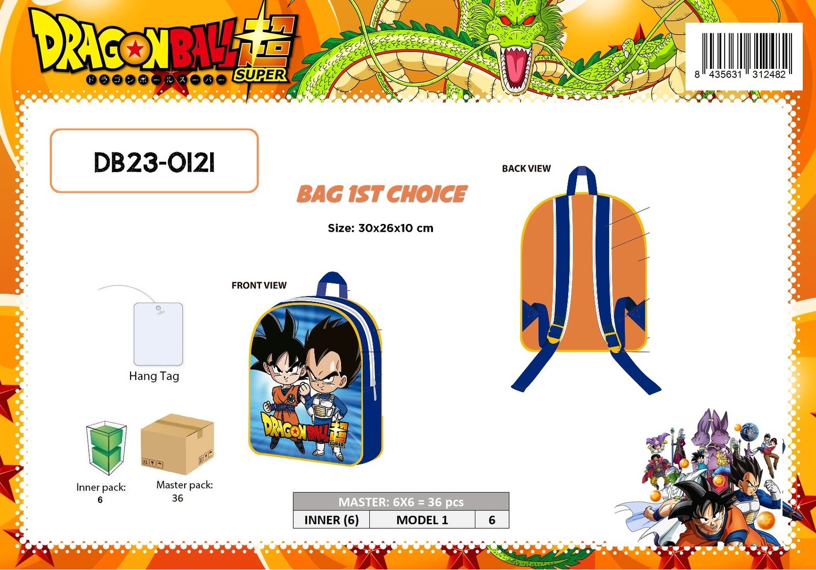 BAG 1ST CHOICE 30CM DRAGON BALL 30X26X10 CM