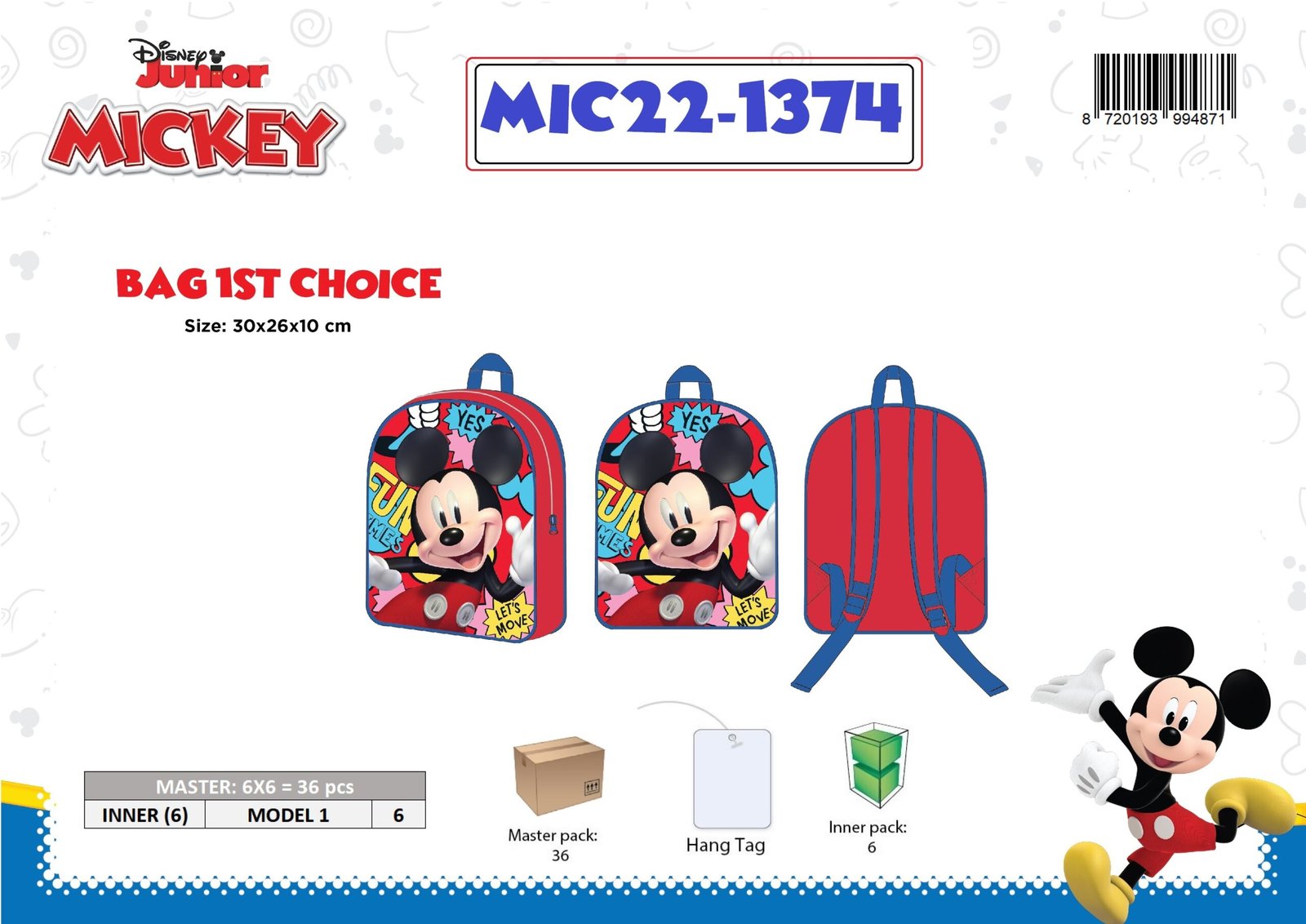 BAG 1ST CHOICE 30CM MICKEY DISNEY 30X26X10 CM